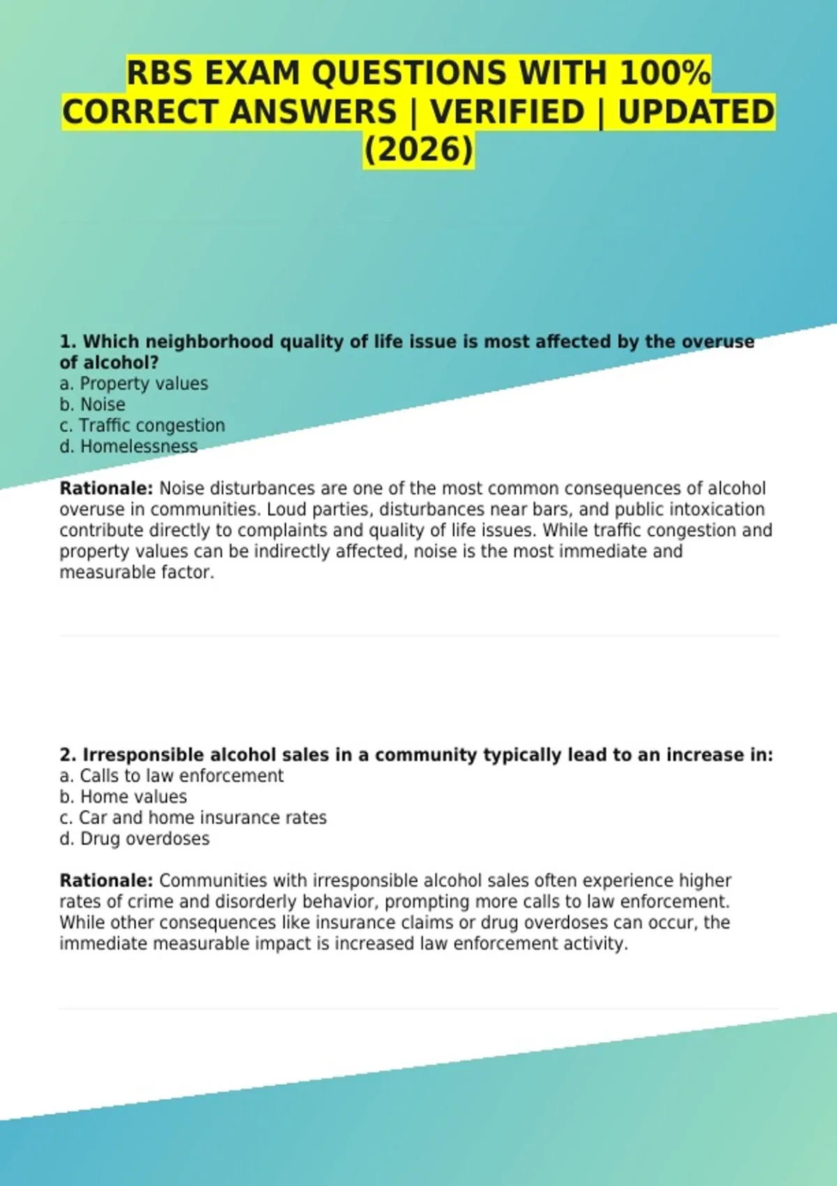 2. Irresponsible alcohol sales in a community typically lead to an increase in: