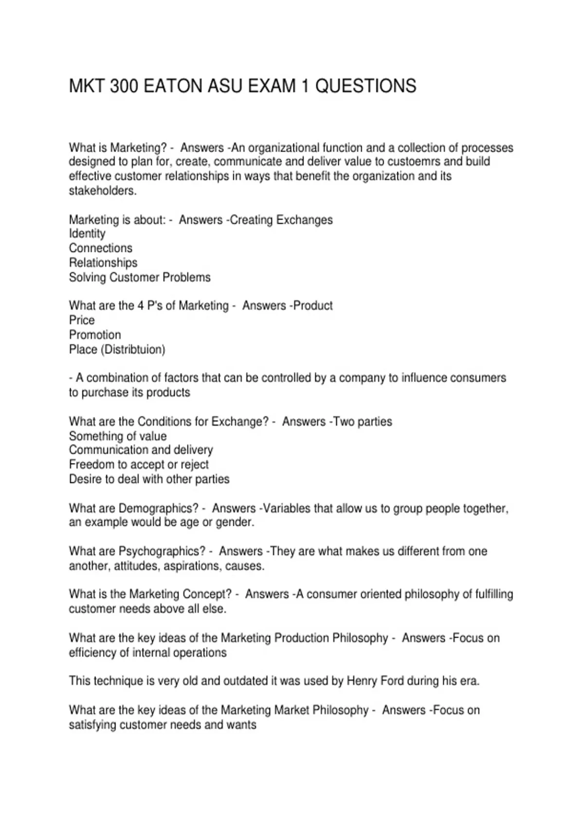 MKT 300 EATON ASU EXAM 1 QUESTIONS