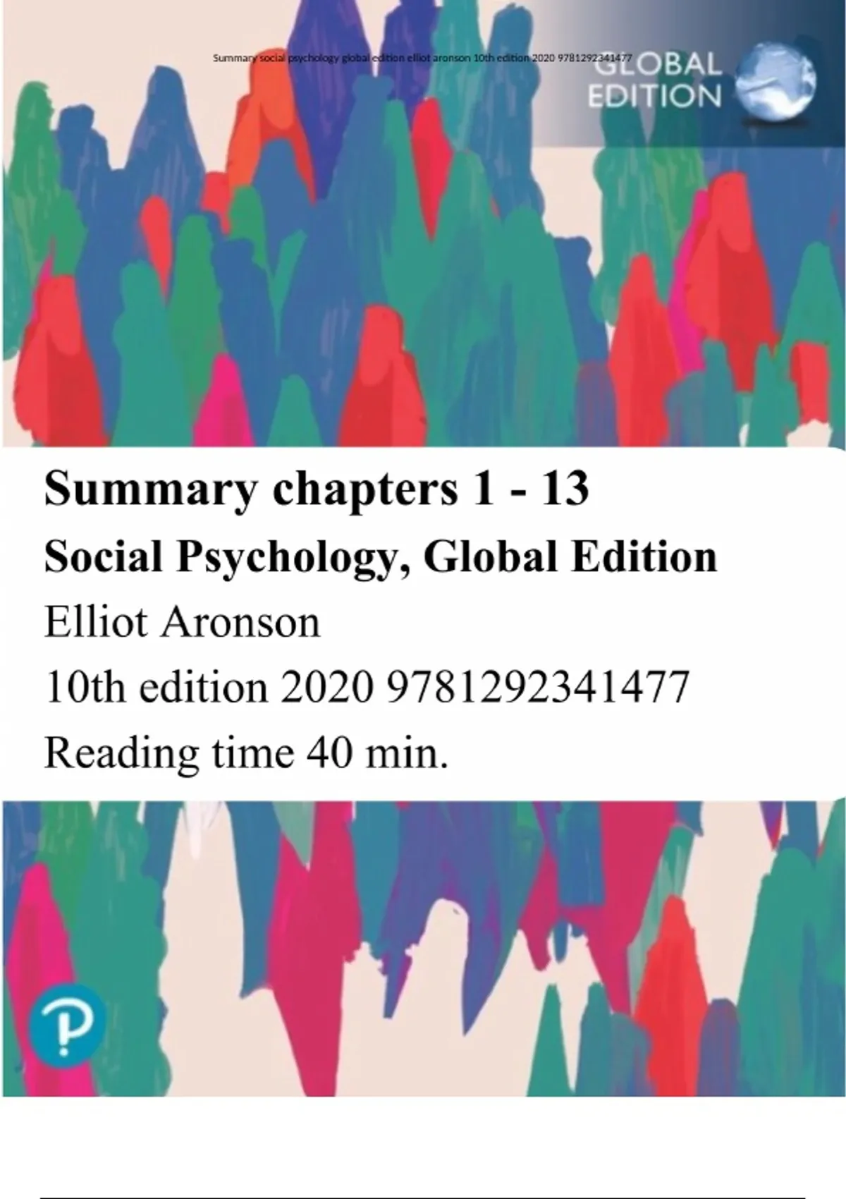 ,Summary social psychology global edition elliot aronson 10th edition 2020 9781292341477