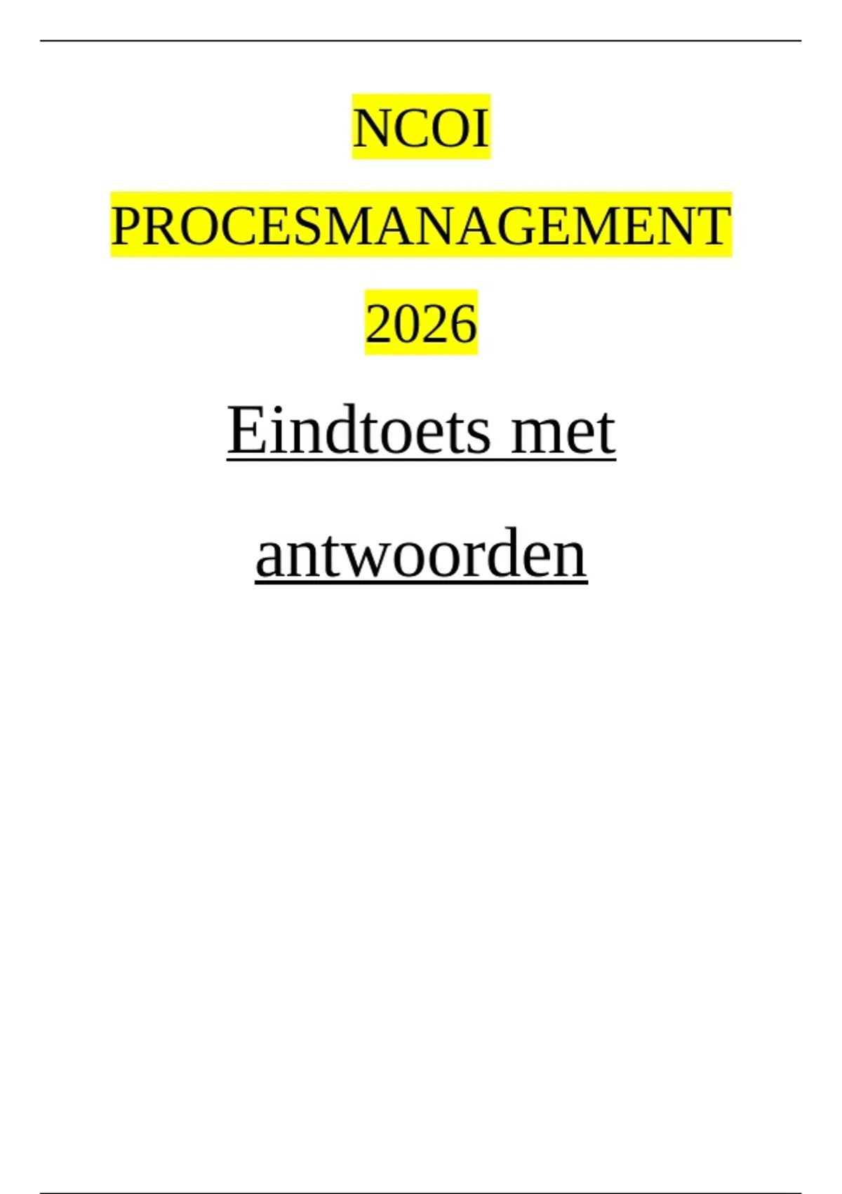 NCOI Procesmanagement - Eindtoets met antwoorden 2026