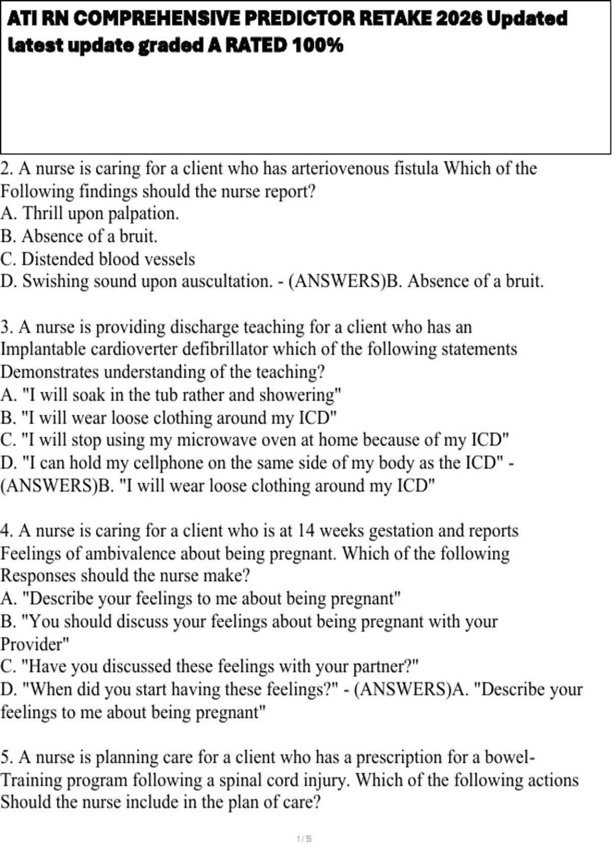 , ATI RN COMPREHENSIVE PREDICTOR RETAKE 2026 Updated