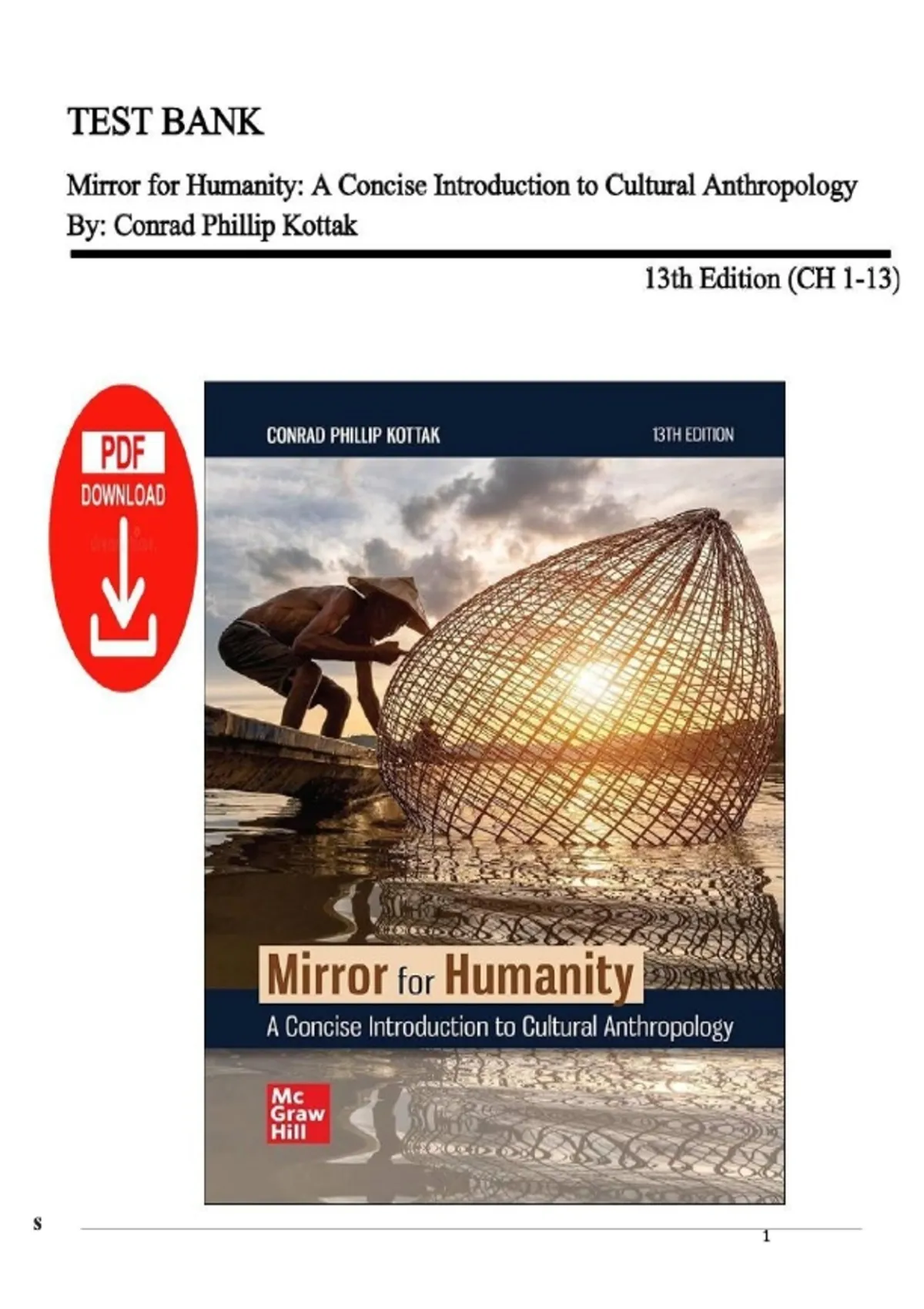This is the complete, expert-verified test bank for the 13th edition of Mirror for Humanity by Conrad Phillip Kottak. Covering all 13 chapters, this resource offers a comprehensive collection of exam questions and verified answers tailored for a concise yet deep understanding of cultural anthropology. Key topics include the "four-field" approach, human adaptation to high altitudes, the complexities of the world system, and the evolving role of anthropology in a globalizing world. The test bank explores core themes such as kinship, gender, religion, and ethnicity, providing critical insights into how culture shapes human behavior. This is an essential study tool for students and instructors looking to master the holistic and comparative perspectives of the discipline.