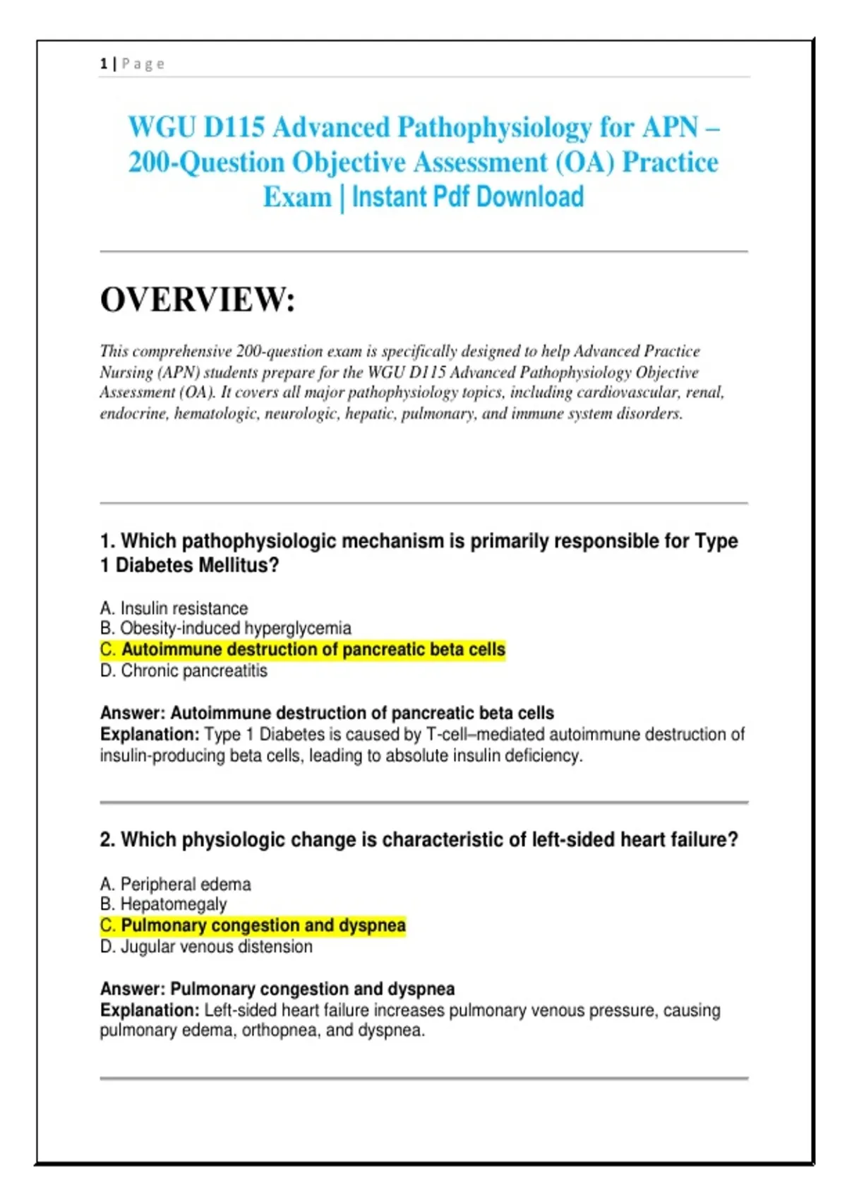 Nursing (APN) students prepare for the WGU D115 Advanced Pathophysiology Objective