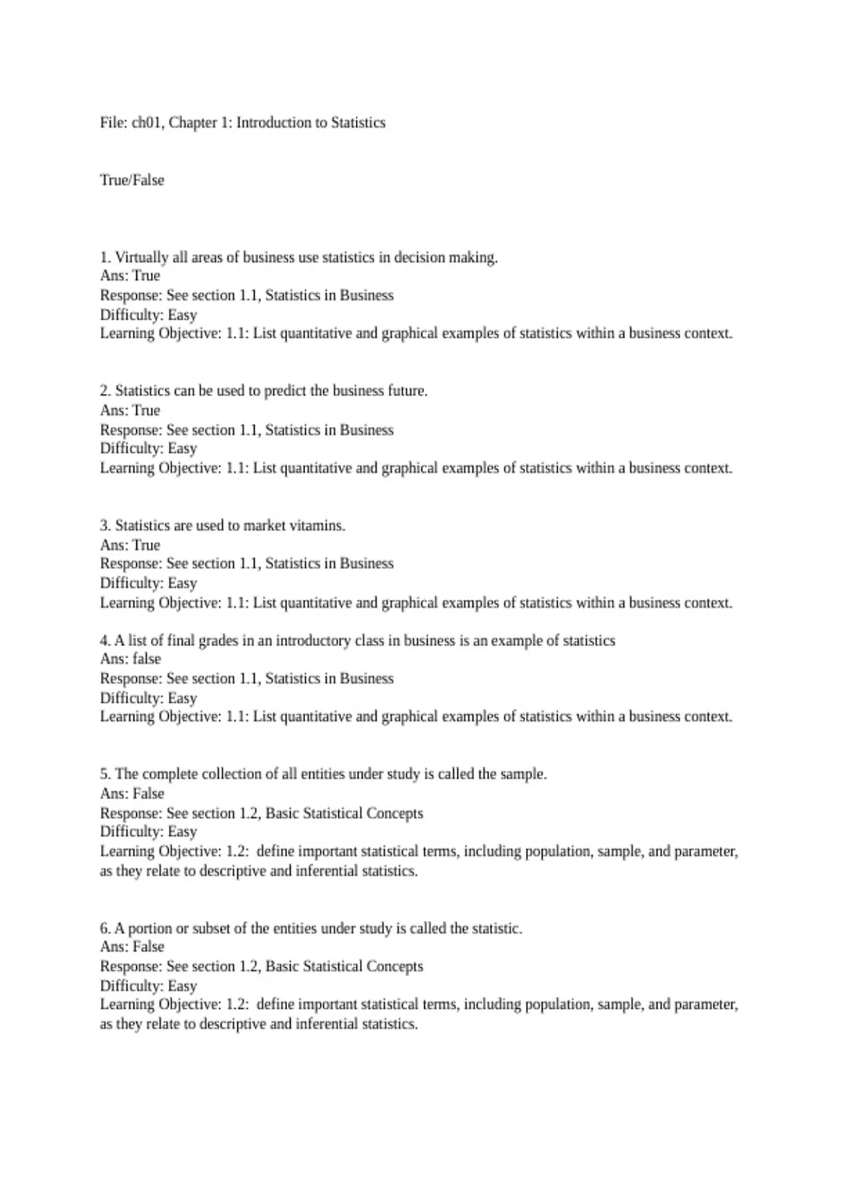 Response: See section 1.1, Statistics in Business
