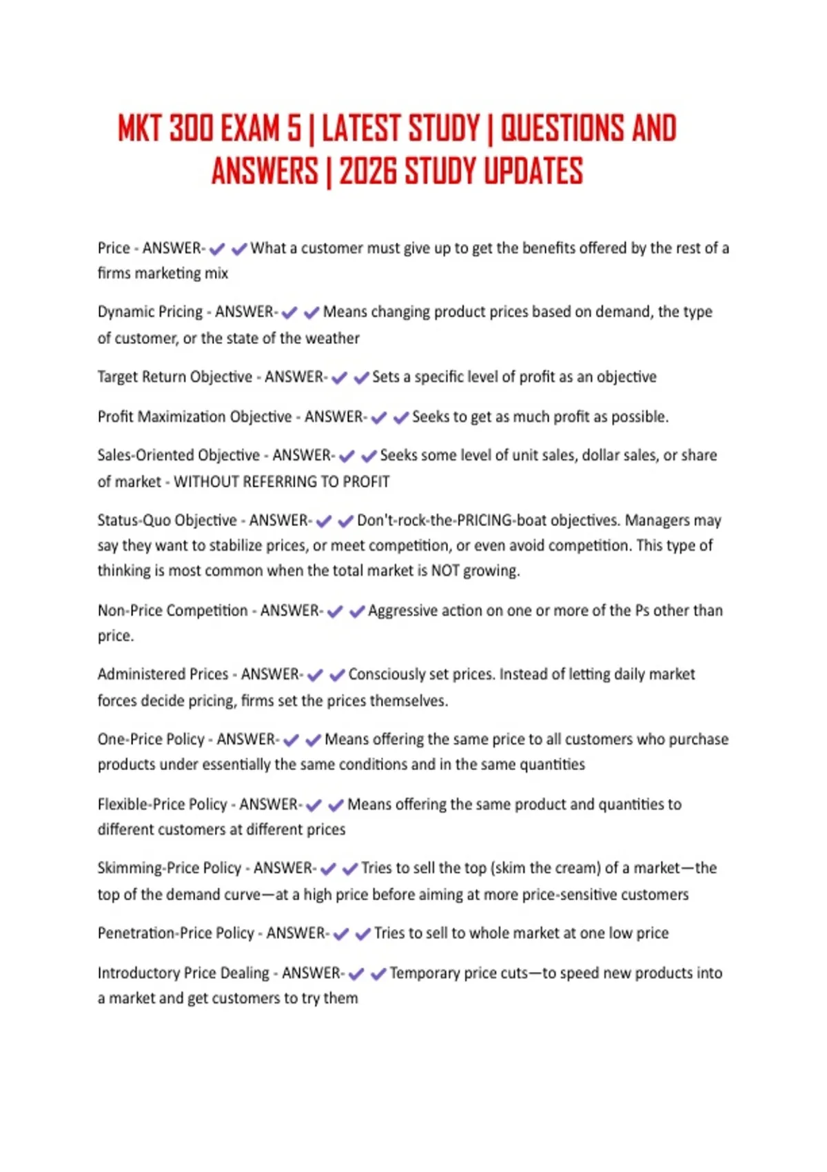MKT 300 EXAM 5 | LATEST STUDY | QUESTIONS AND ANSWERS | 2026 STUDY UPDATES