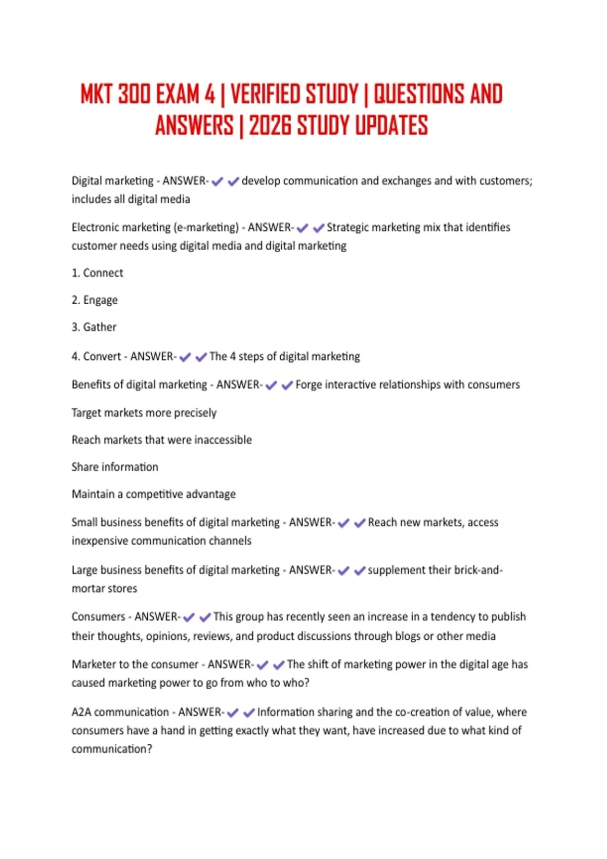 Benefits of digital marketing - ANSWER- Forge interactive relationships with consumers