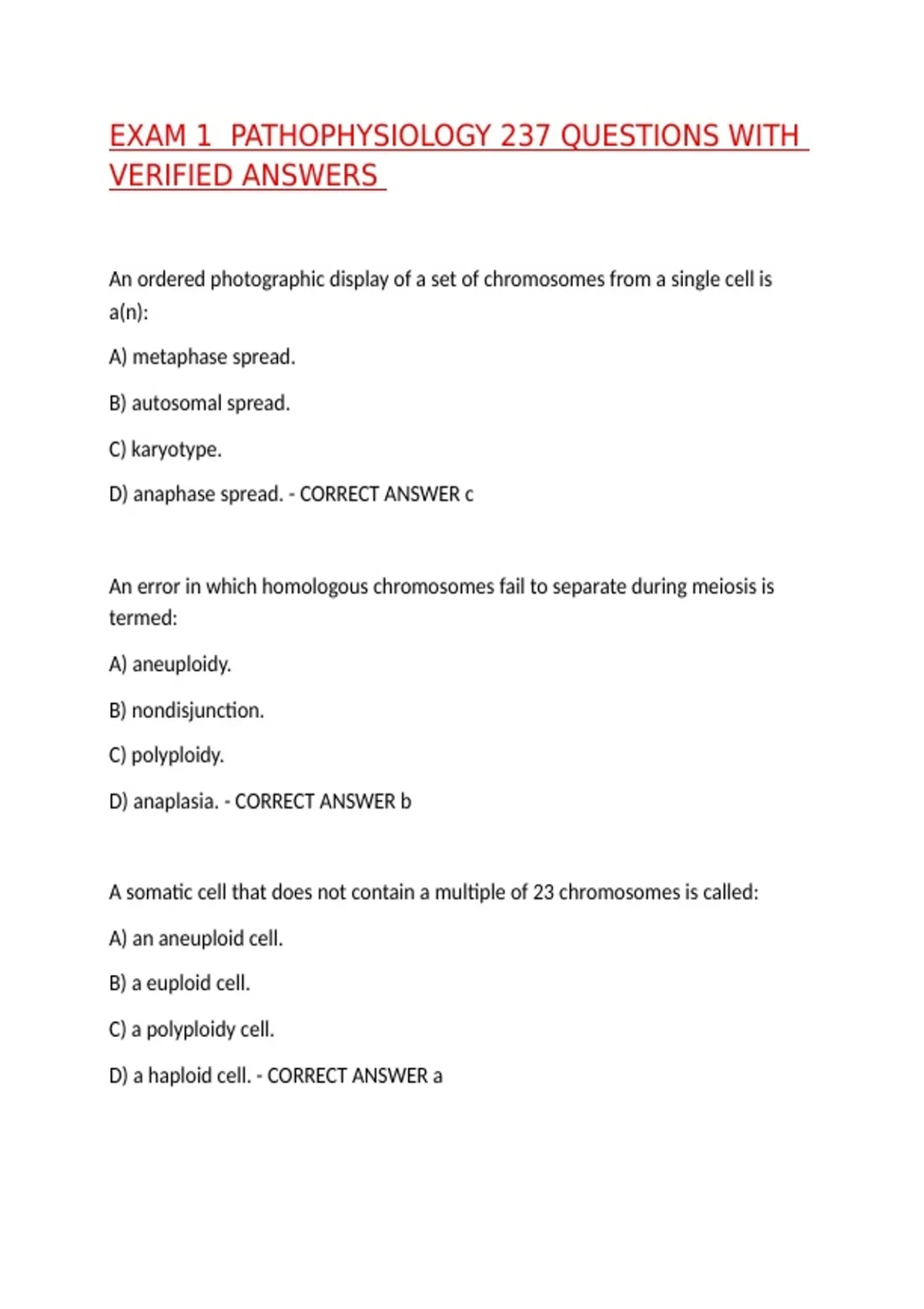 D) a haploid cell. - CORRECT ANSWER a