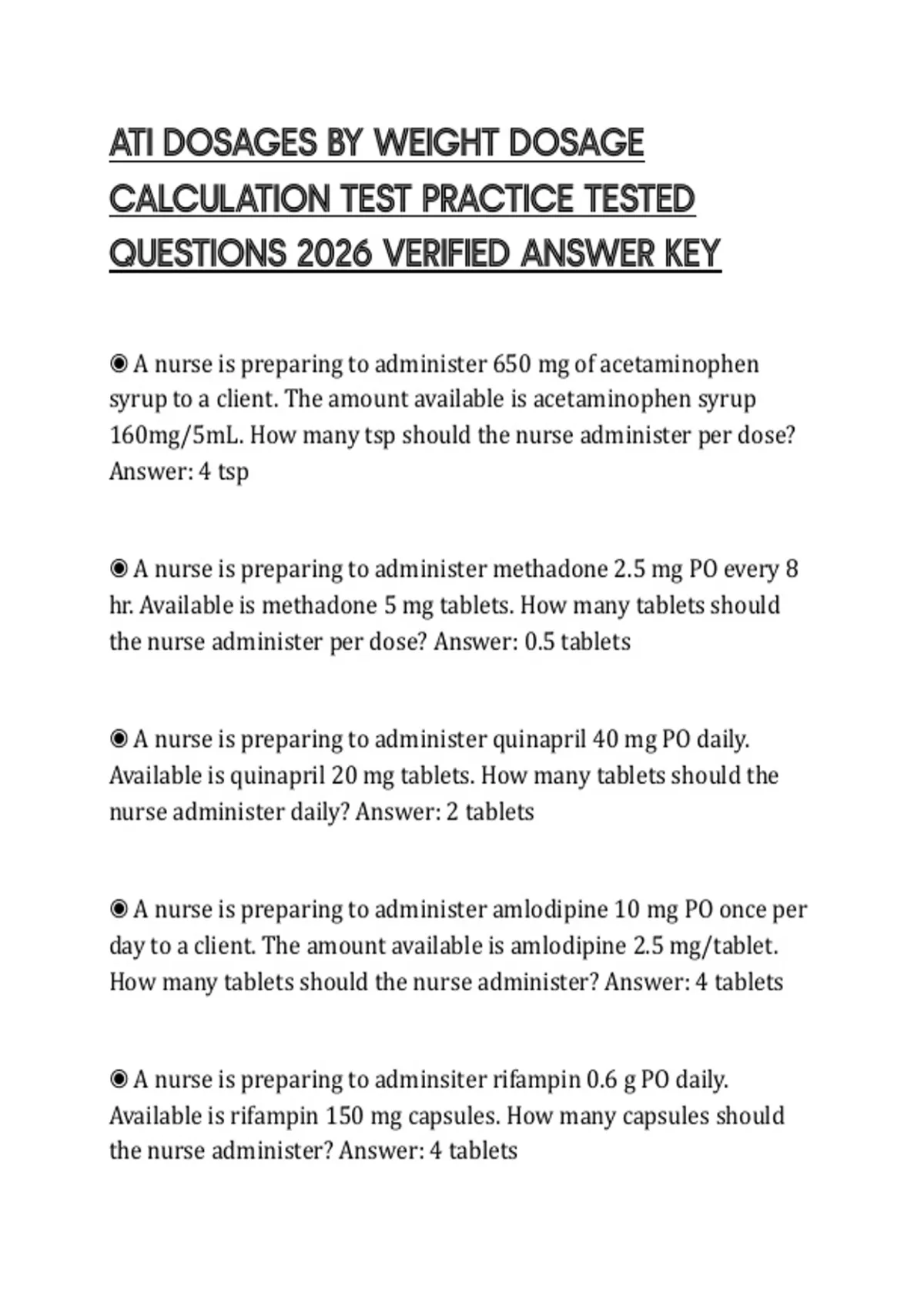 ATI DOSAGES BY WEIGHT DOSAGE CALCULATION TEST PRACTICE TESTED QUESTIONS 2026 VERIFIED ANSWER KEY