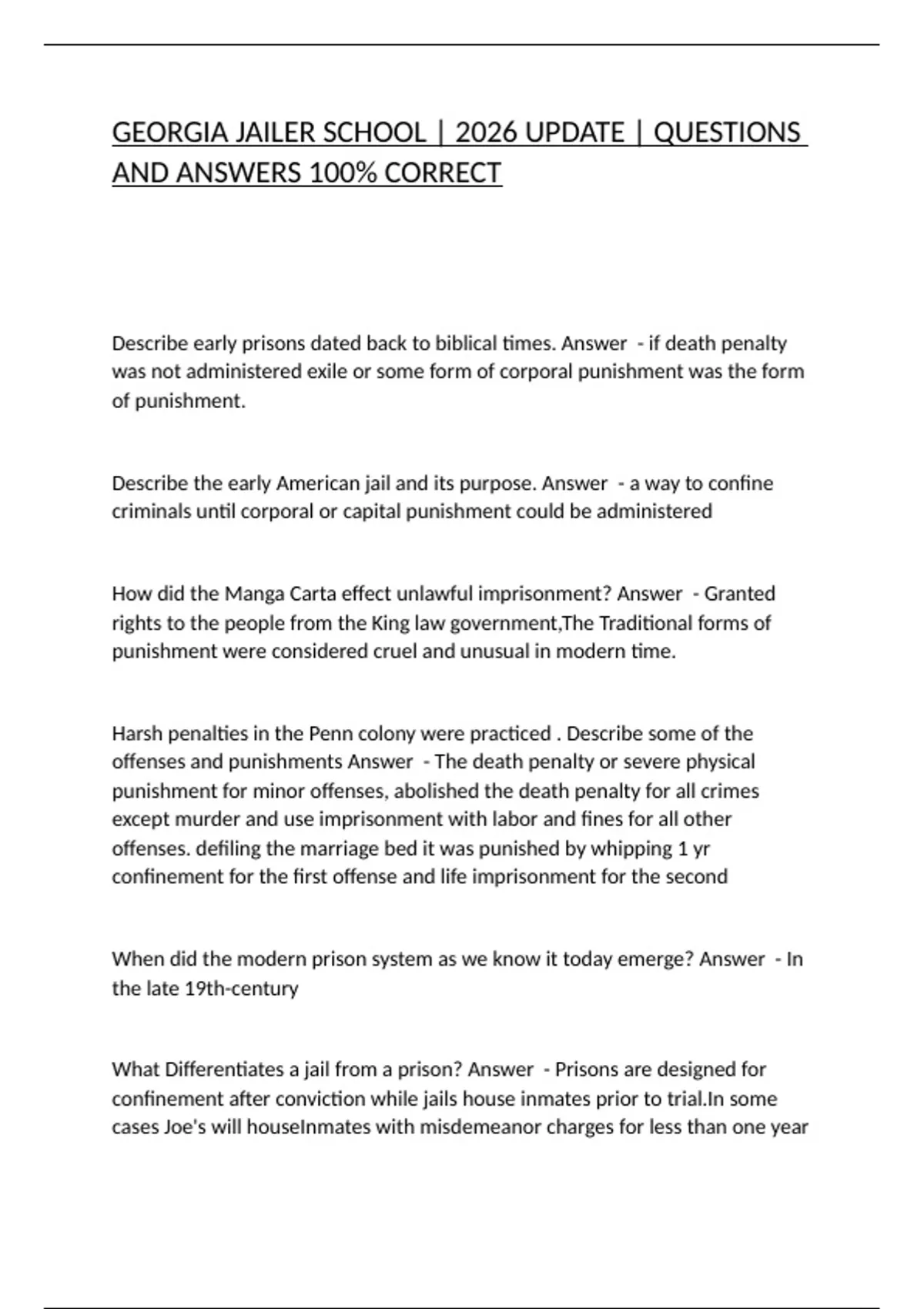GEORGIA JAILER SCHOOL | 2026 UPDATE | QUESTIONS AND ANSWERS 100% CORRECT