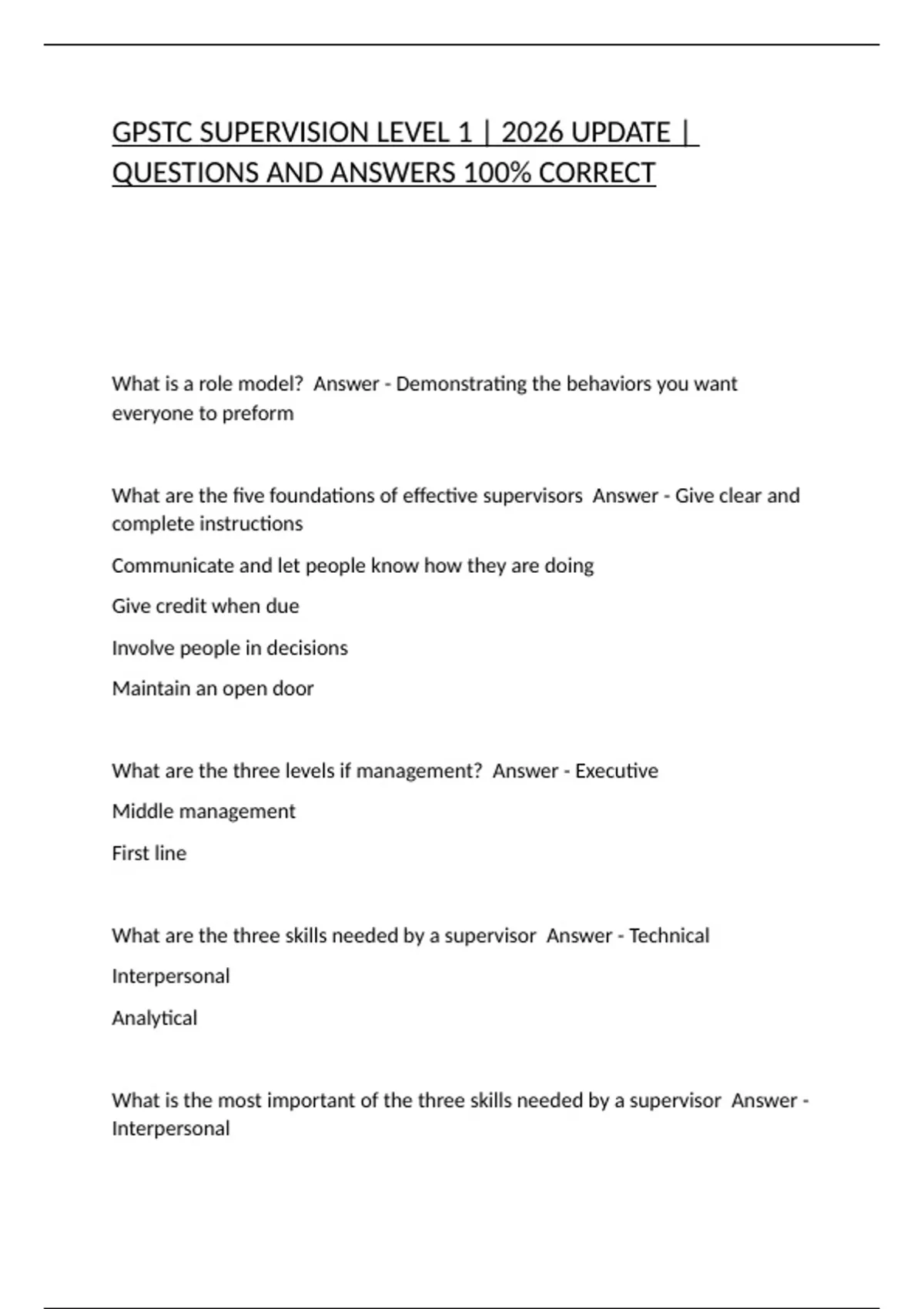 GPSTC SUPERVISION LEVEL 1 | 2026 UPDATE | QUESTIONS AND ANSWERS 100% CORRECT