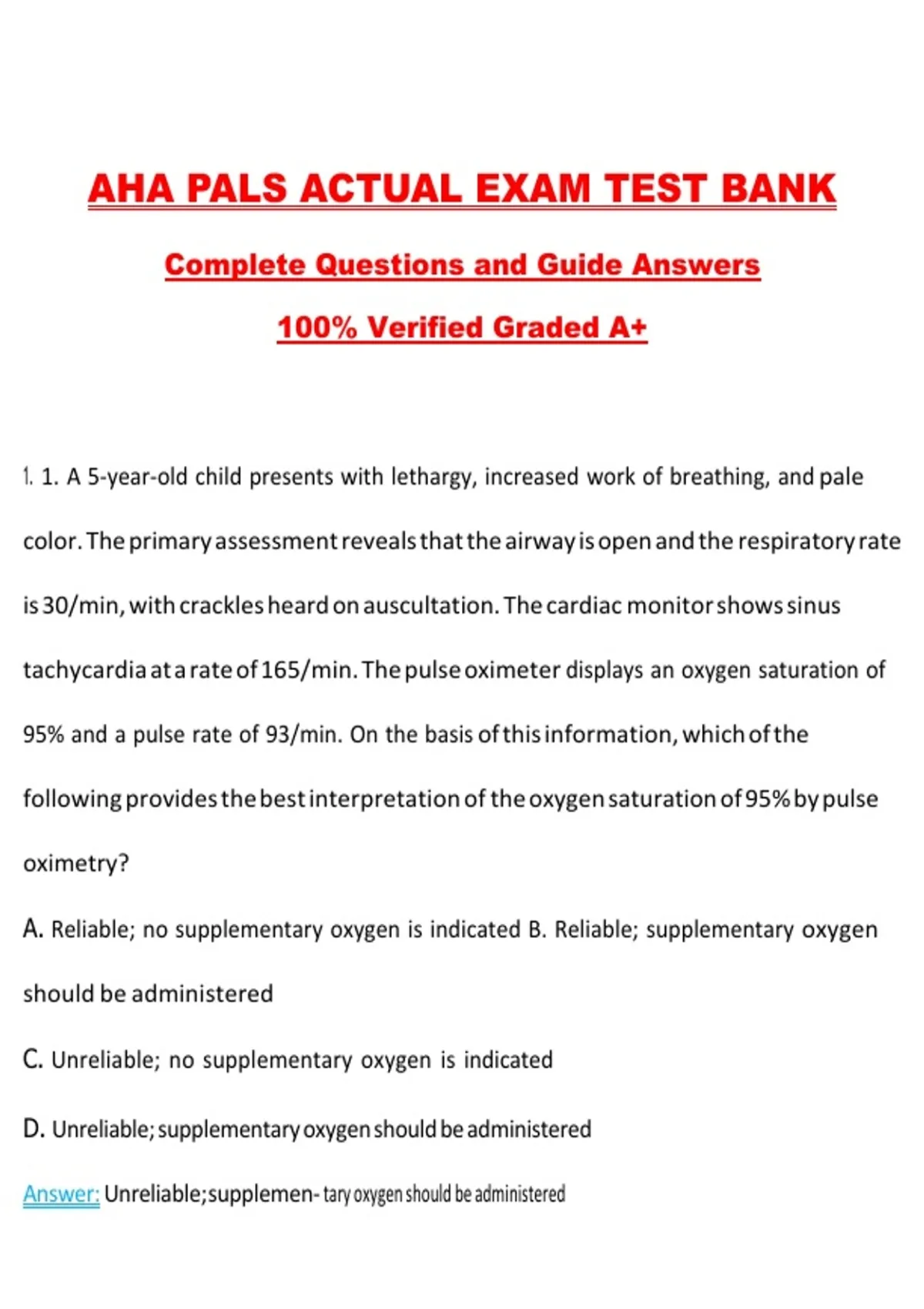 Answer: Unreliable; supplemen- tary oxygen should be administered