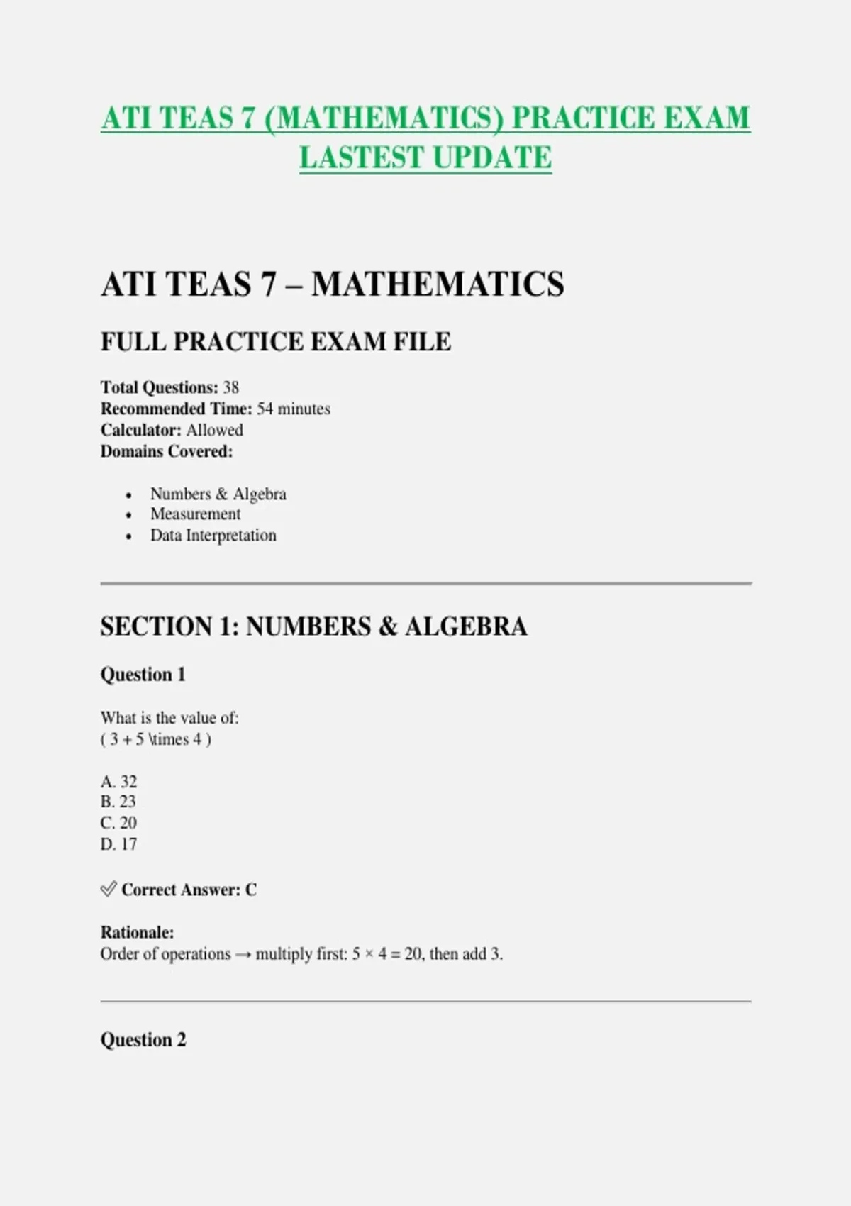 ATI TEAS 7 – MATHEMATICS