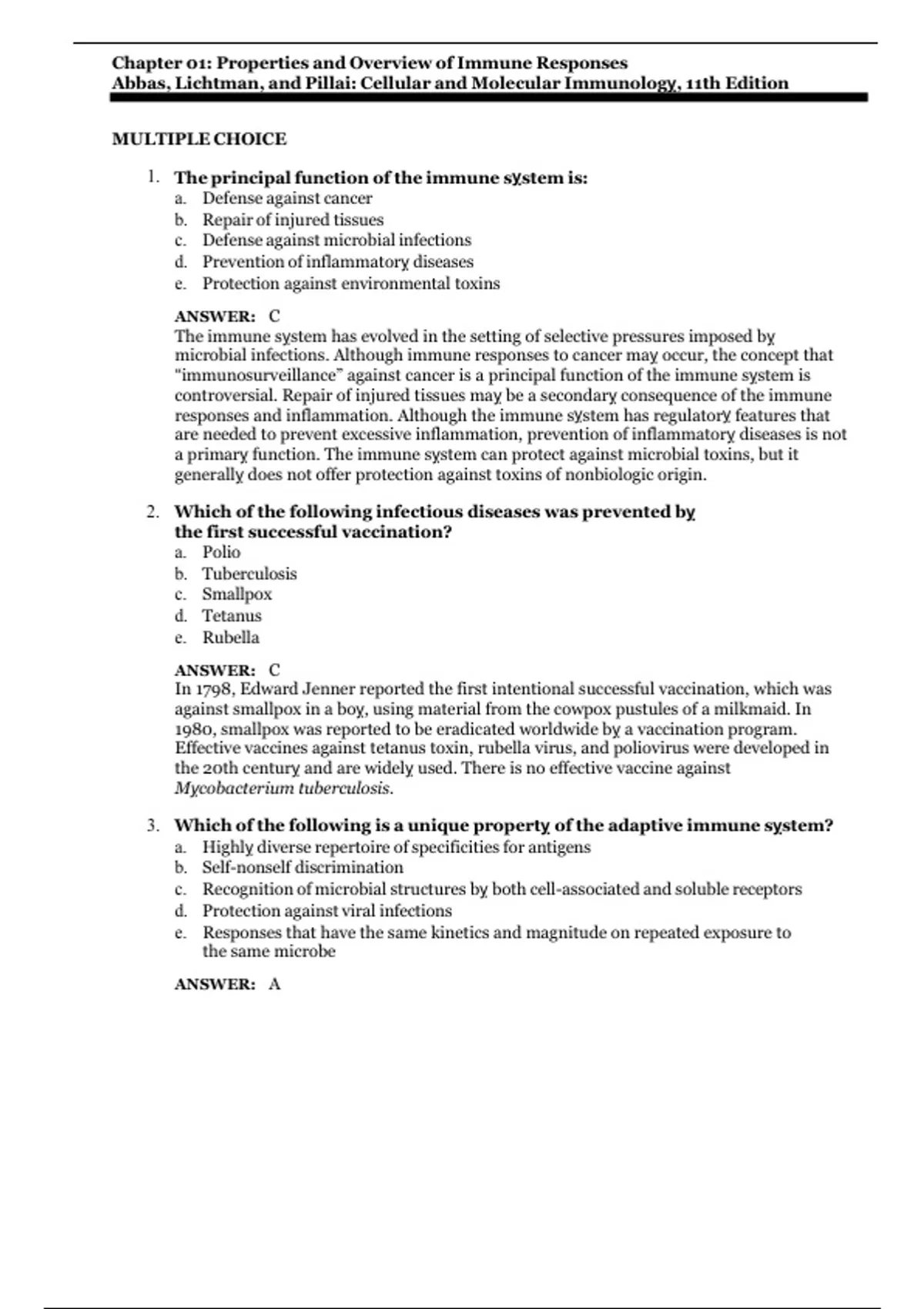 Test Bank for Cellular and Molecular Immunology 11th Edition by Abul K. Abbas | 2026/2027 Complete Chapter Questions & Answers with Rationales, A+ Guide