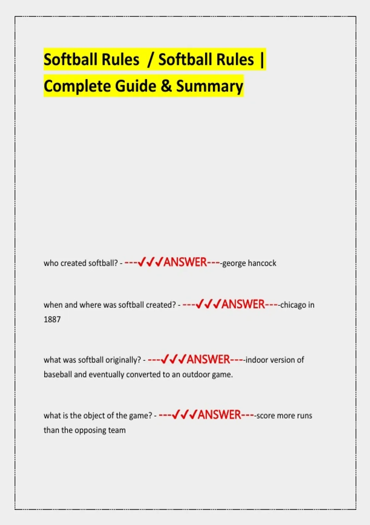 who created softball? - ---✔✔✔ANSWER----george hancock