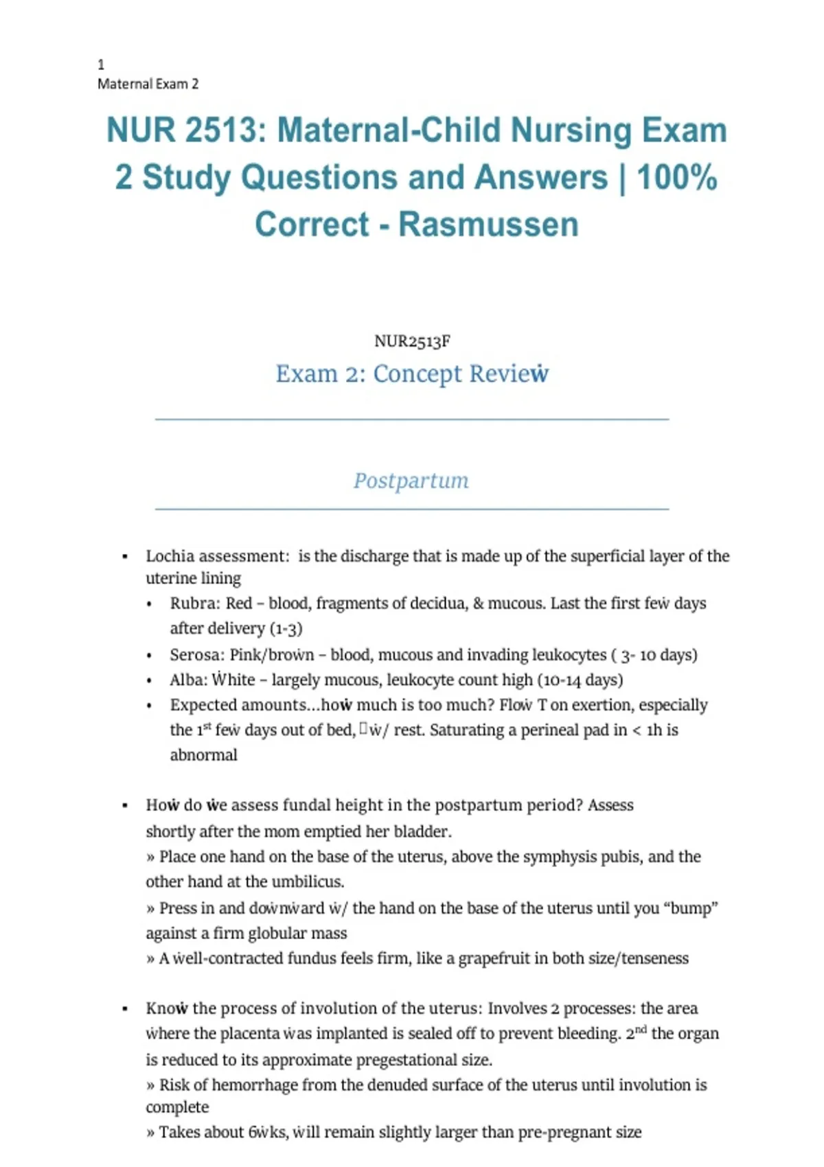NUR 2513: Maternal-Child Nursing Exam 2 – 2026/2027 | Study Questions and Answers (100% Correct, Rasmussen University)