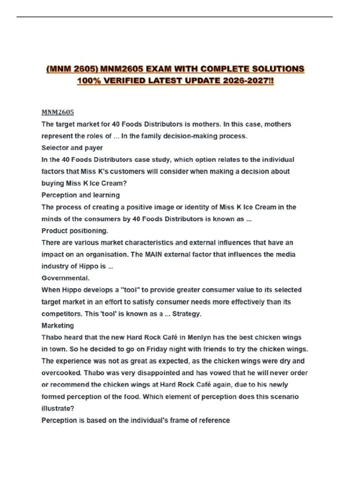 (MNM 2605) MNM2605 EXAM WITH COMPLETE SOLUTIONS 100% VERIFIED LATEST UPDATE !!...