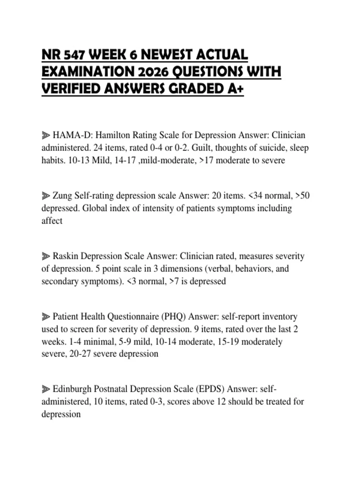 ⫸ HAMA-D: Hamilton Rating Scale for Depression Answer: Clinician