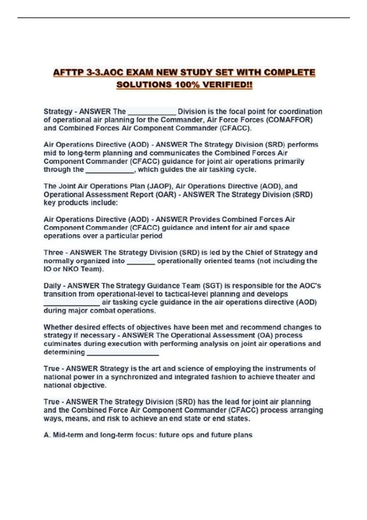 AFTTP 3-3.AOC EXAM NEW STUDY SET WITH COMPLETE SOLUTIONS 100% VERIFIED!!...