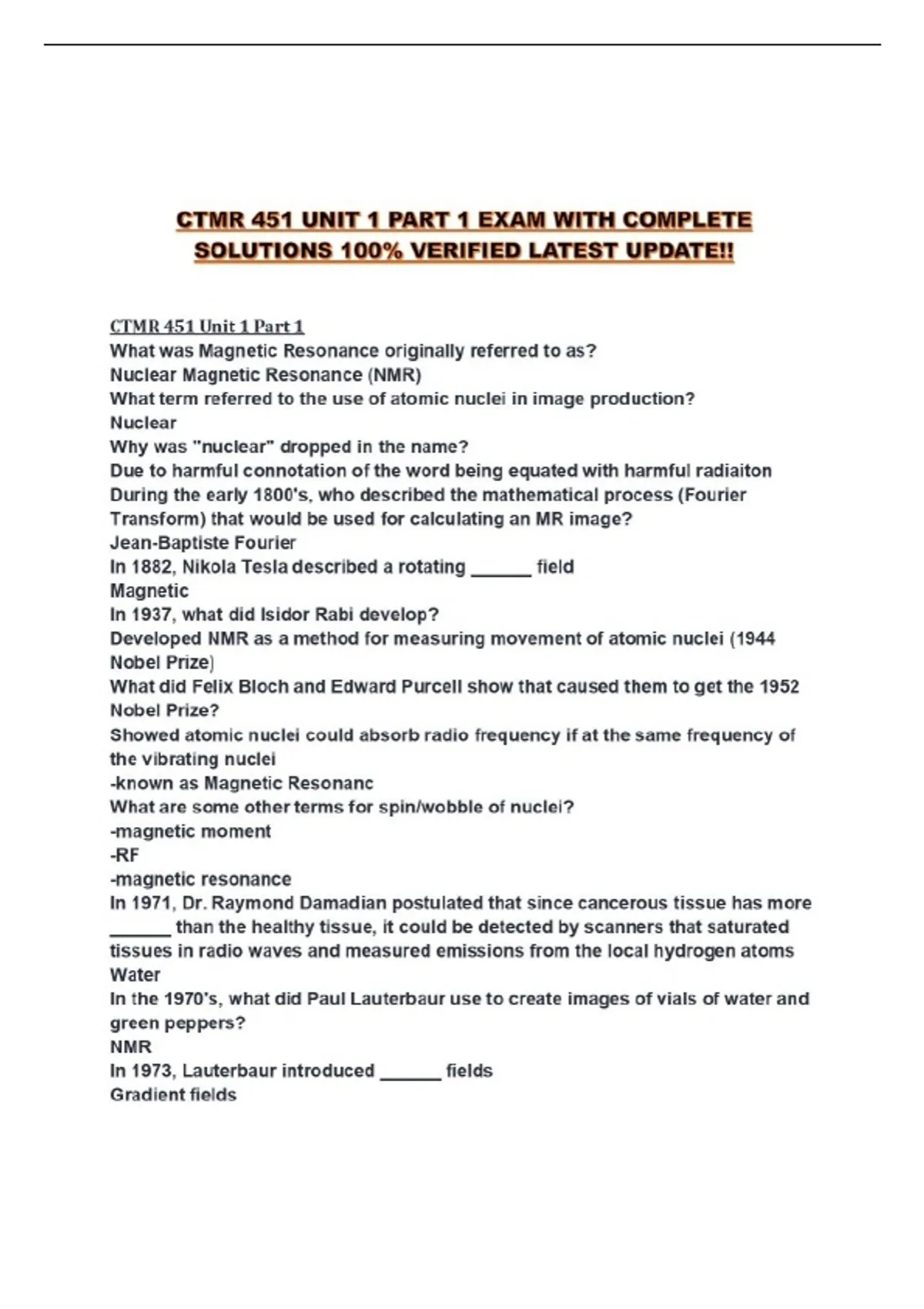 CTMR 451 UNIT 1 PART 1 EXAM WITH COMPLETE SOLUTIONS 100% VERIFIED LATEST UPDATE!!...