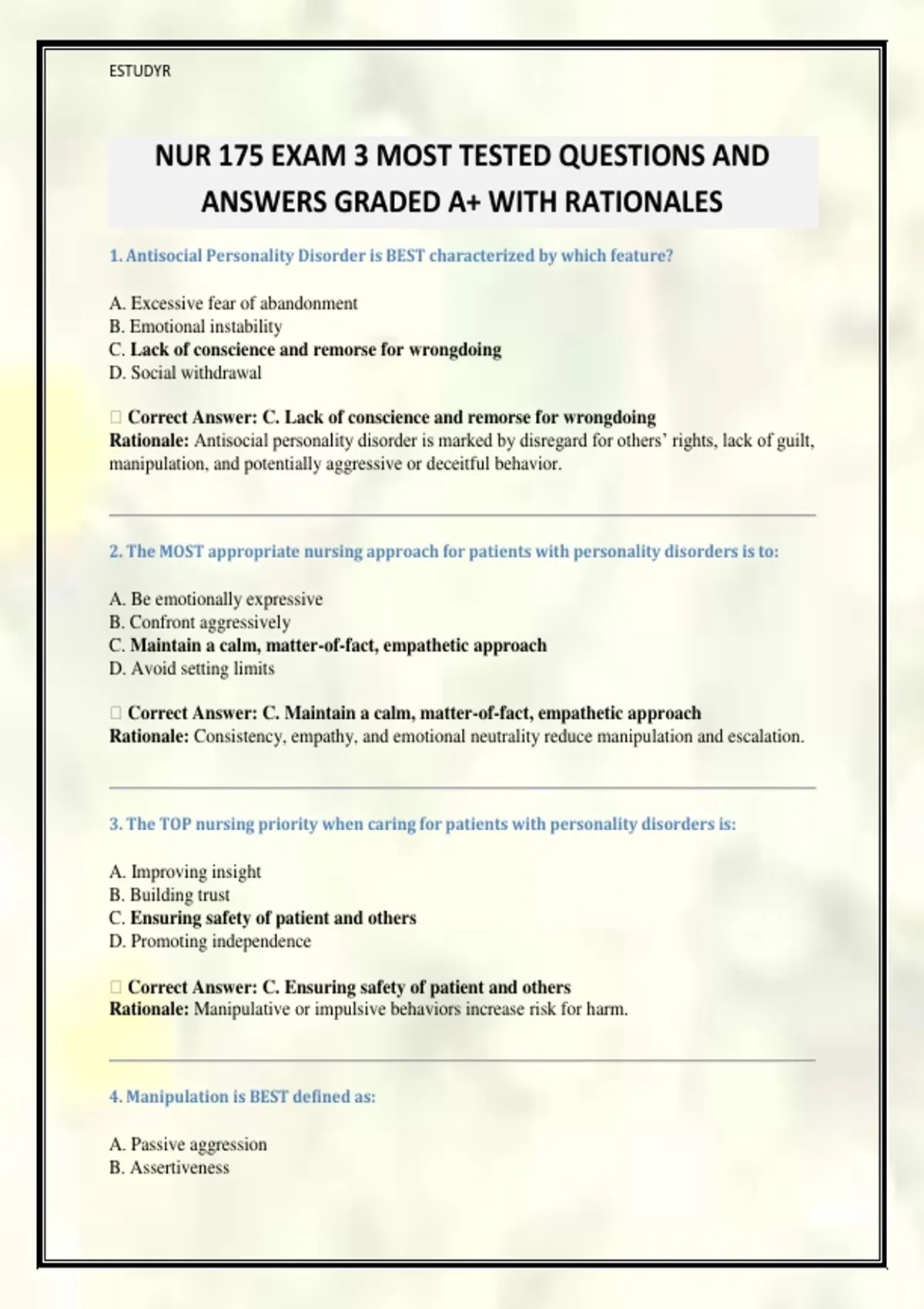 ANSWERS GRADED A+ WITH RATIONALES
