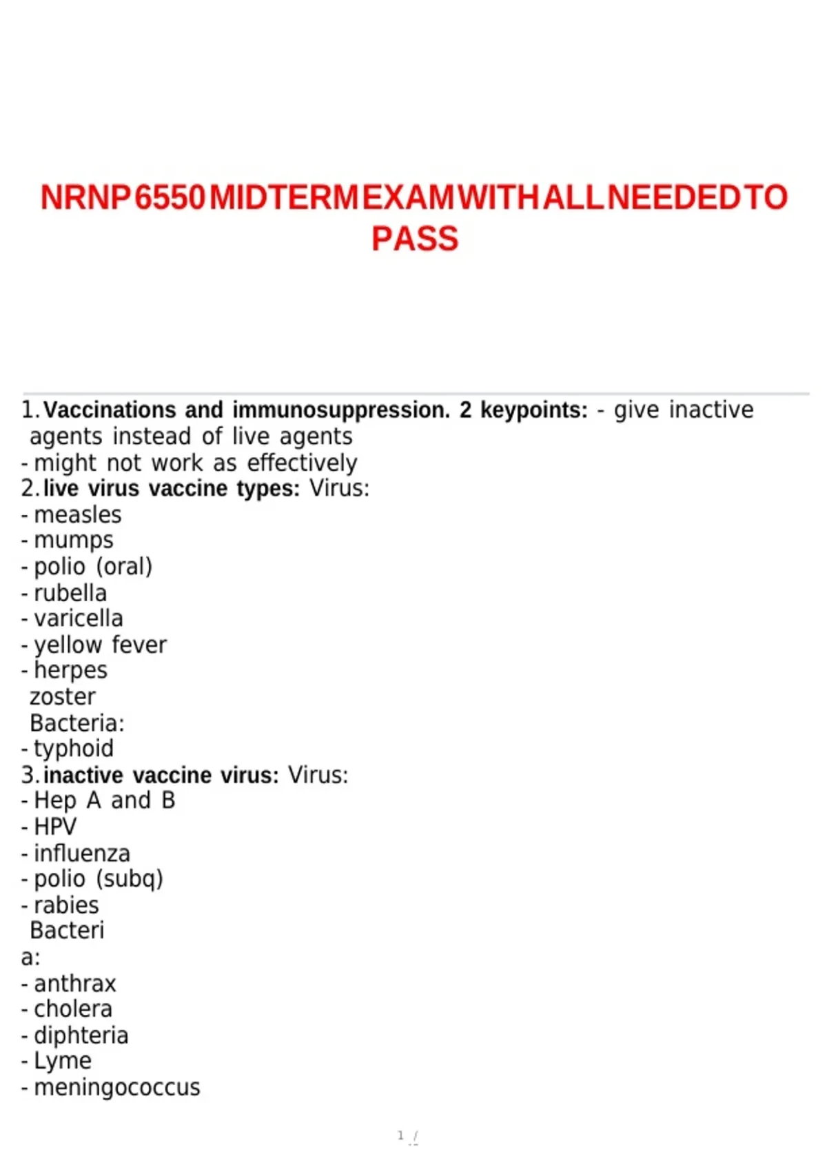 1.Vaccinations band bimmunosuppression. b2 bkeypoints: b- bgive binactive