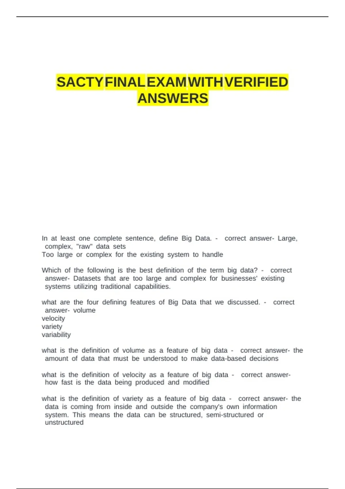 SACTY FINAL EXAM WITH VERIFIED ANSWERS.