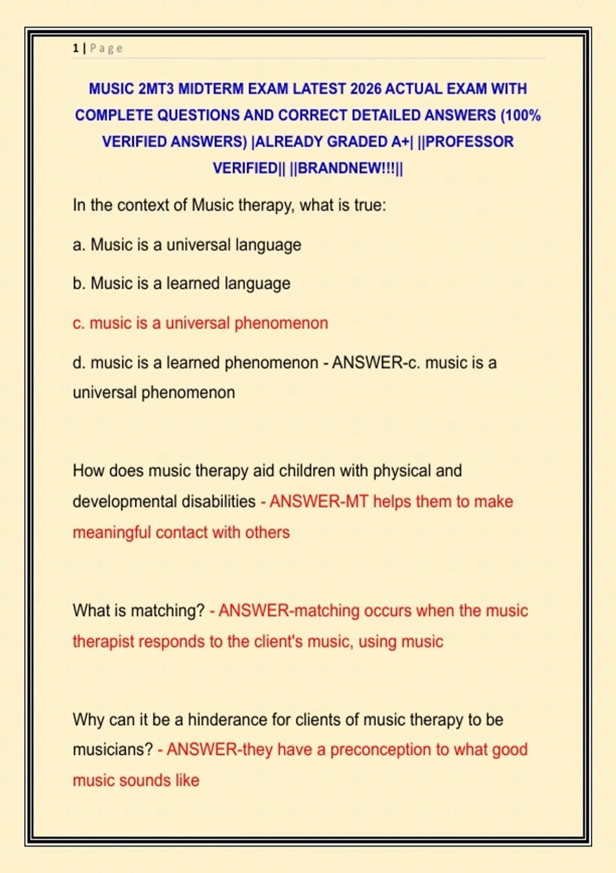 MUSIC 2MT3 MIDTERM EXAM LATEST 2026 ACTUAL EXAM WITH