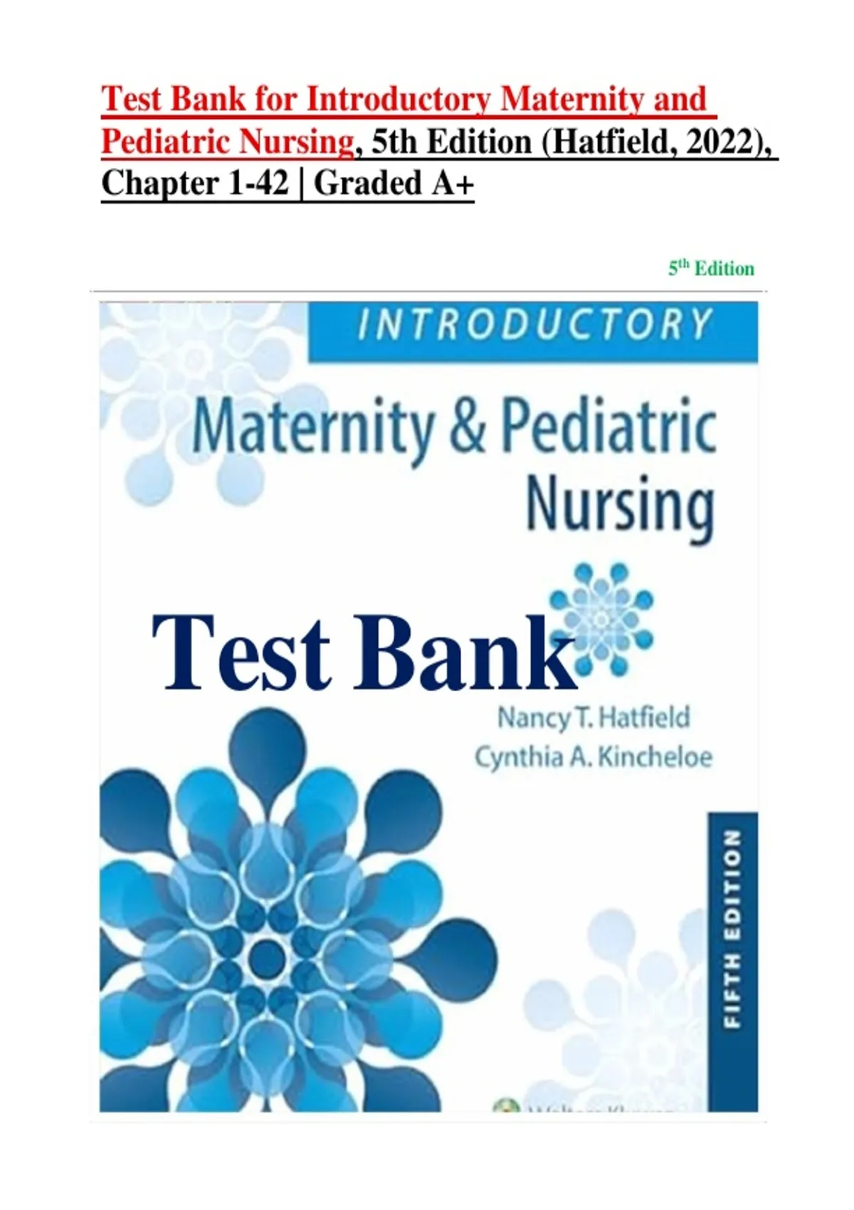 Test Bank for Introductory Maternity and Pediatric Nursing, 5th Edition (Hatfield), Chapter 1-42 | Graded A+