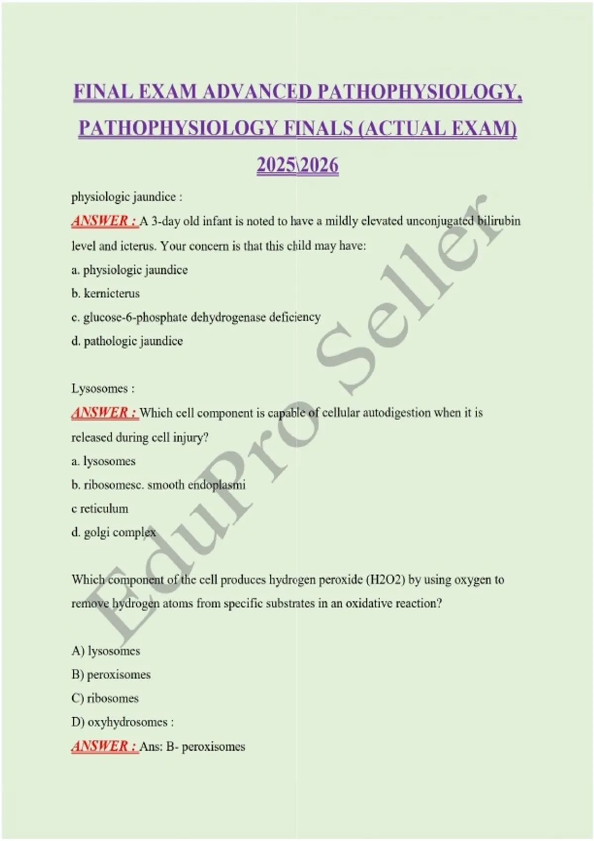 FINAL EXAM ADVANCED PATHOPHYSIOLOGY, PATHOPHYSIOLOGY FINALS (ACTUAL EXAM)