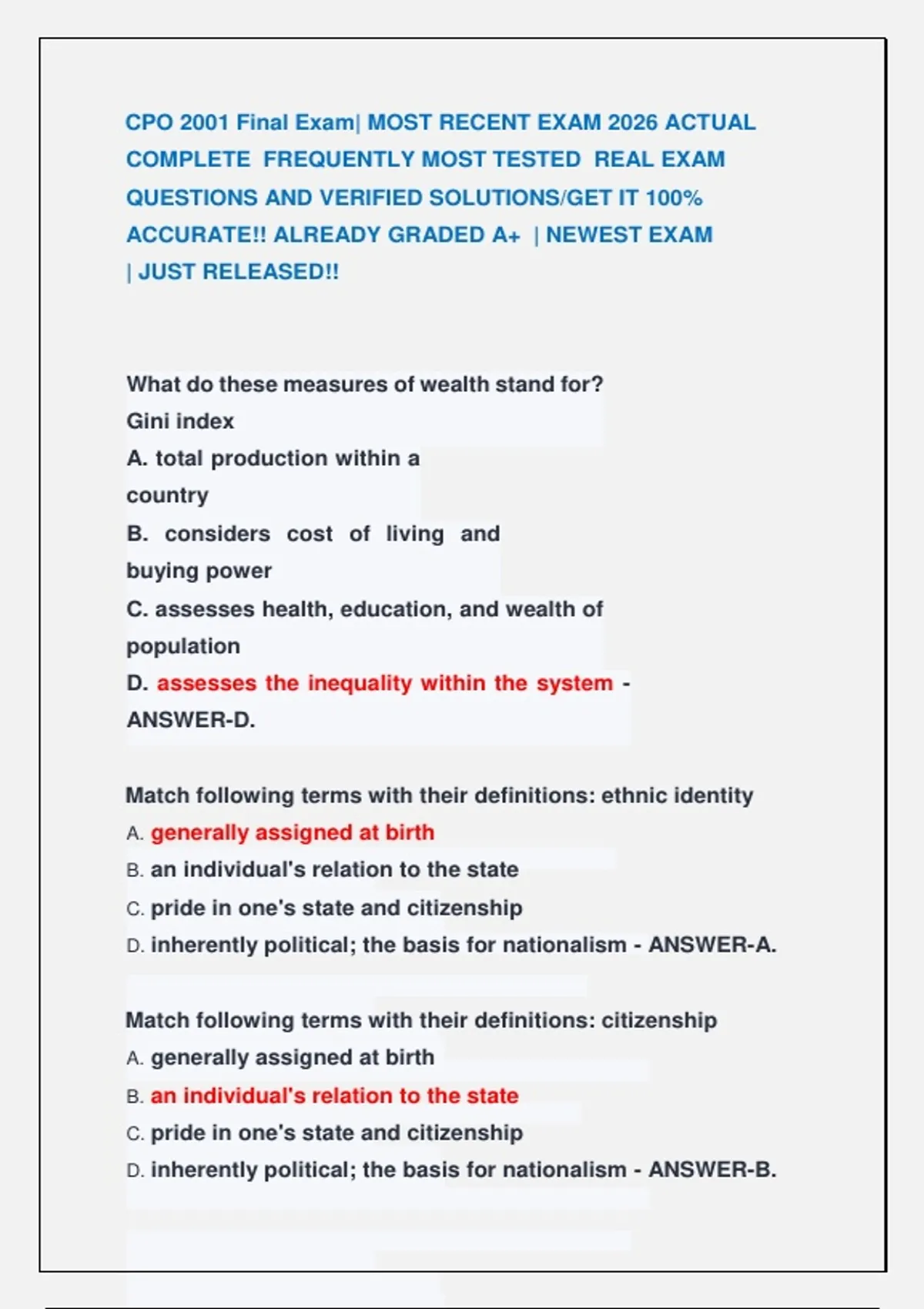 ACCURATE!! ALREADY GRADED A+ | NEWEST EXAM