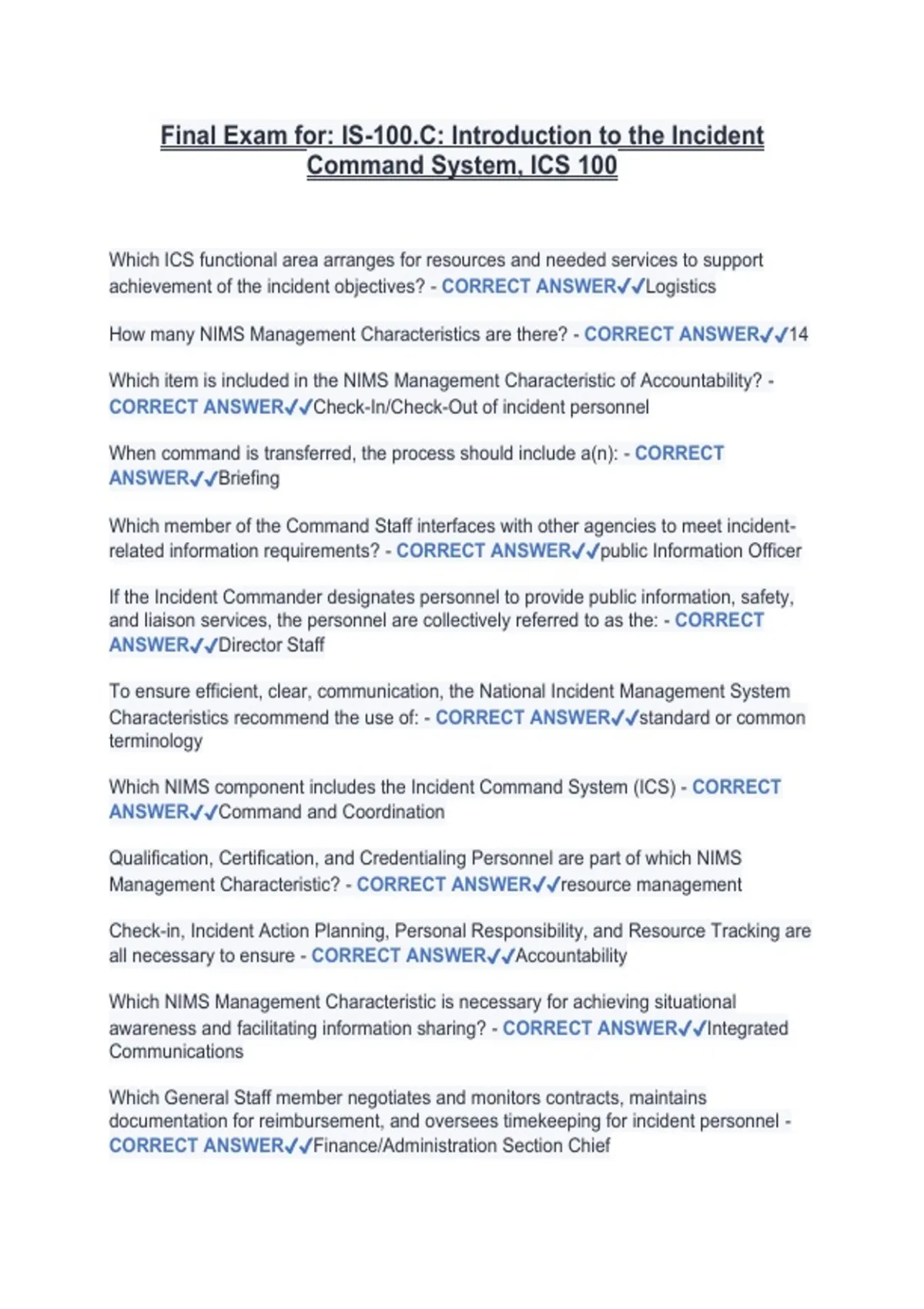 CORRECT ANSWER✔✔Finance/Administration Section Chief