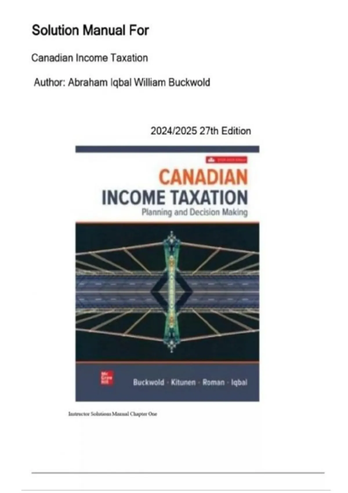 Solution Manual For Canadian Income Taxation 2024/2025 27th Edition ( Abraham Iqbal William Buckwold, 2024) All Chapters | Newest Edition 2026