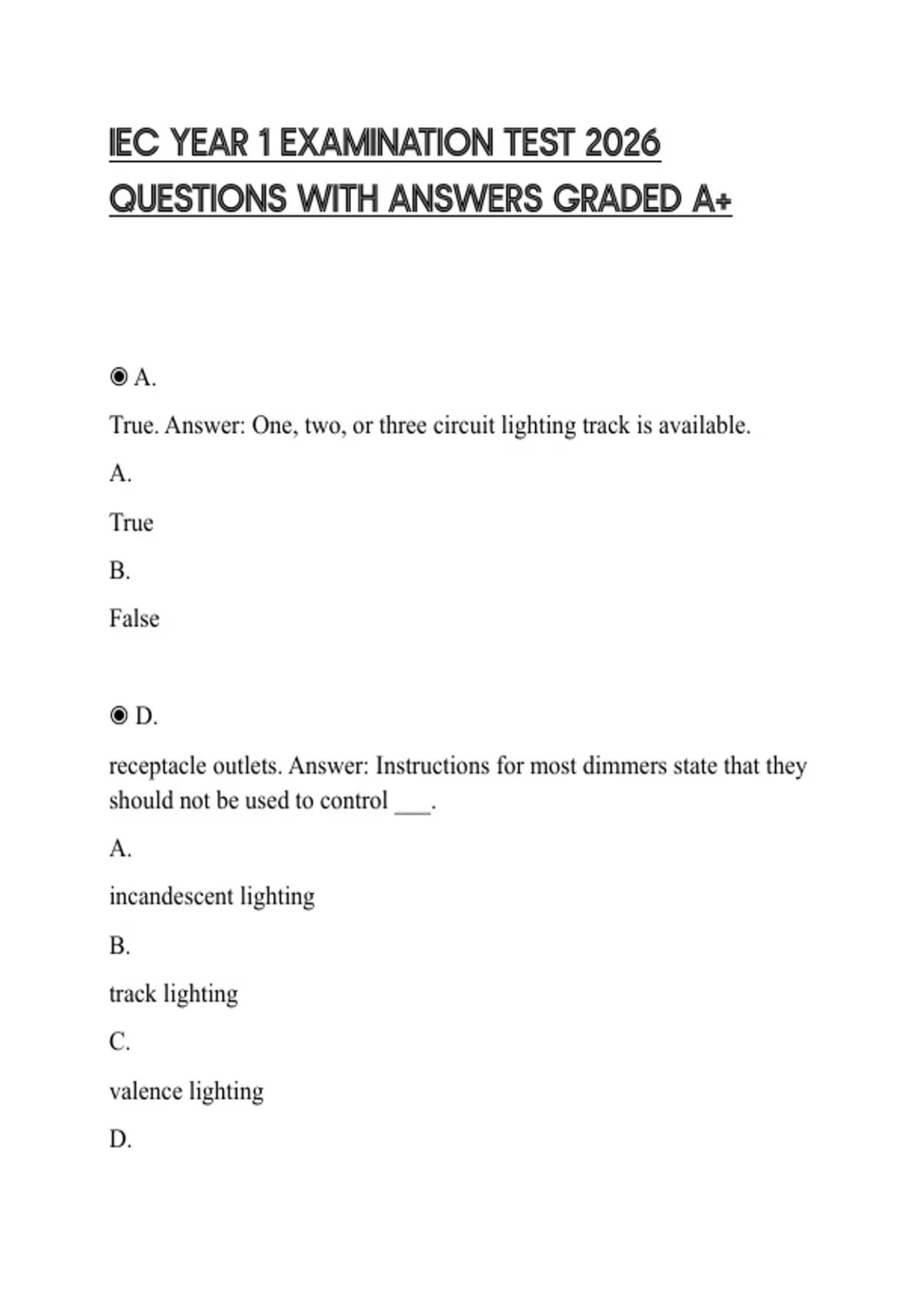 IEC YEAR 1 EXAMINATION TEST 2026 QUESTIONS WITH ANSWERS GRADED A+