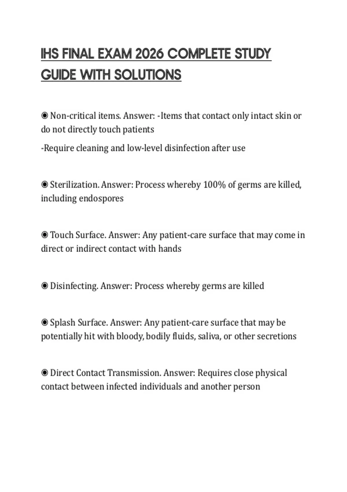 IHS FINAL EXAM 2026 COMPLETE STUDY GUIDE WITH SOLUTIONS