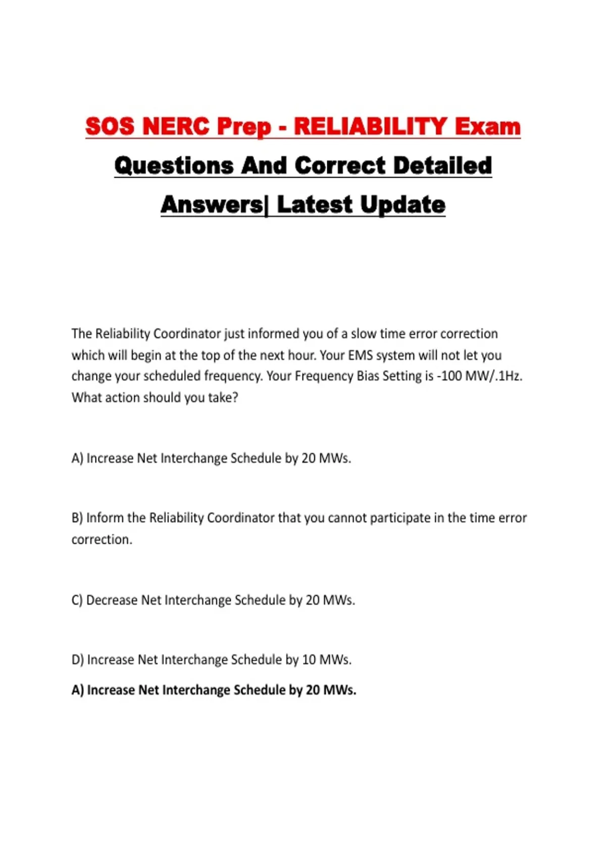 SOS NERC Prep - RELIABILITY Exam Questions And Correct Detailed Answers| Latest Update