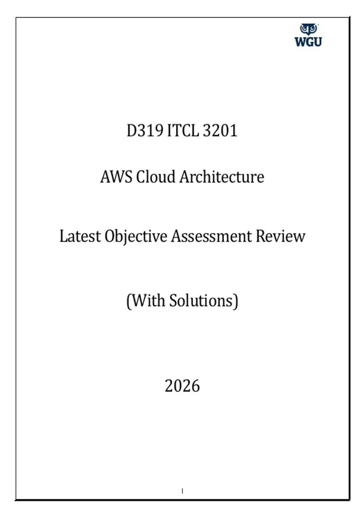 D319 ITCL 3201 (AWS Cloud Architecture) Latest Objective Assessment Review 2026 D319 ITCL 3201 (AWS Cloud Architecture) Latest Objective Assessment Review 2026