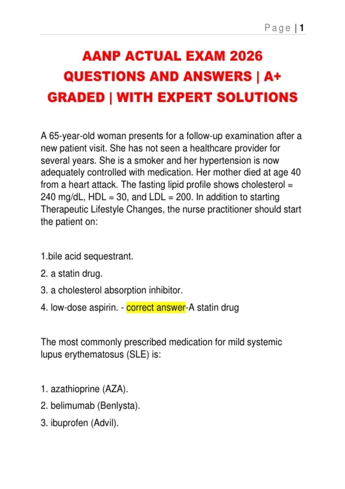 4. low-dose aspirin. - correct answer-A statin drug