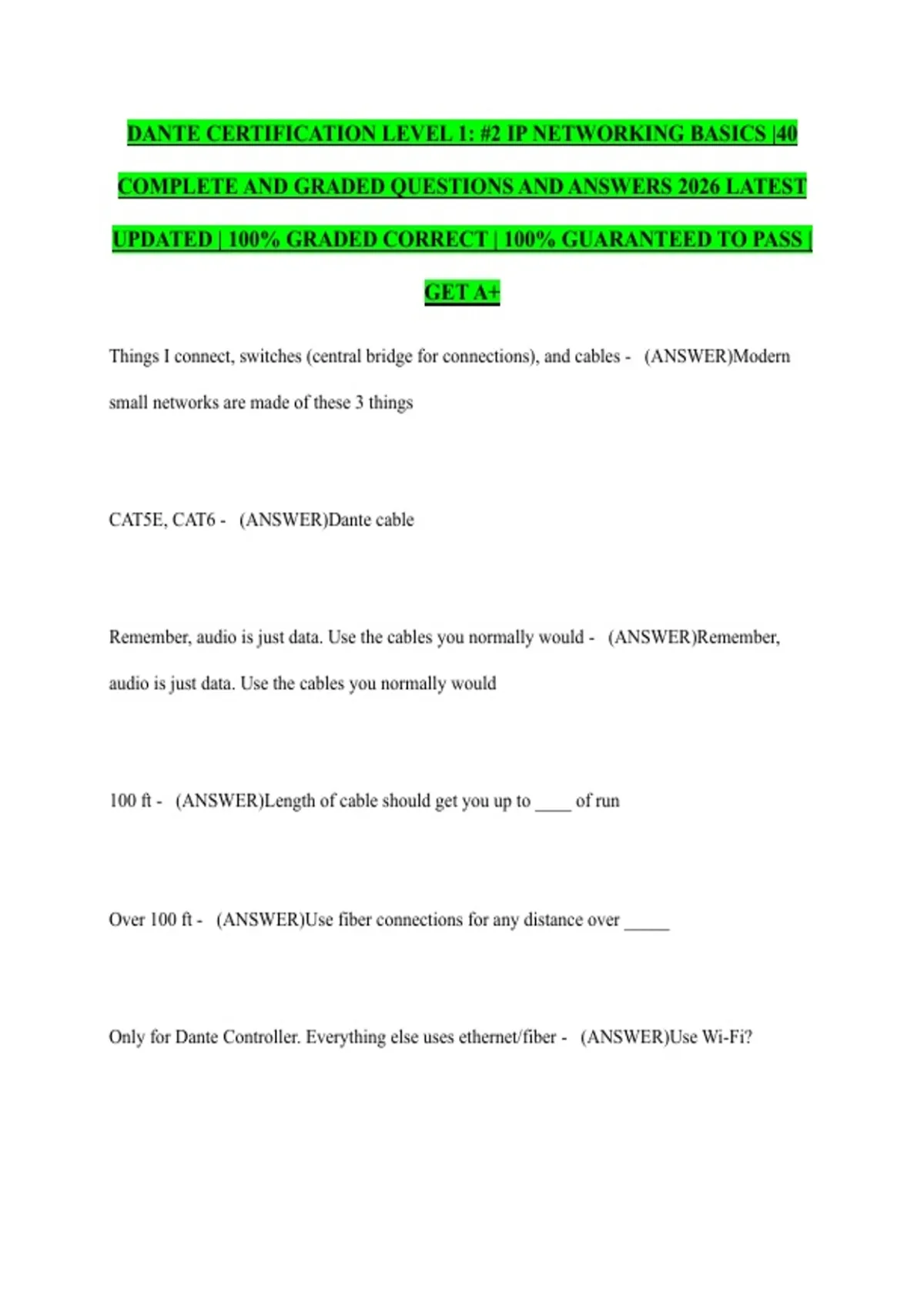 UPDATED | 100% GRADED CORRECT | 100% GUARANTEED TO PASS |