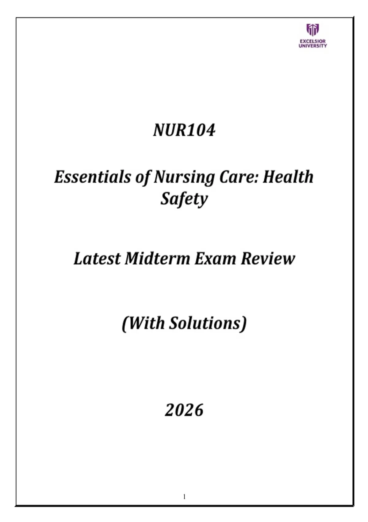 NUR104 Nursing Essentials (Health Safety) Midterm Exam Review 2026 (Qns & Ans).NUR104 Nursing Essentials (Health Safety) Midterm Exam Review 2026 (Qns & Ans).NUR104 Nursing Essentials (Health Safety) Midterm Exam Review 2026 (Qns & Ans).