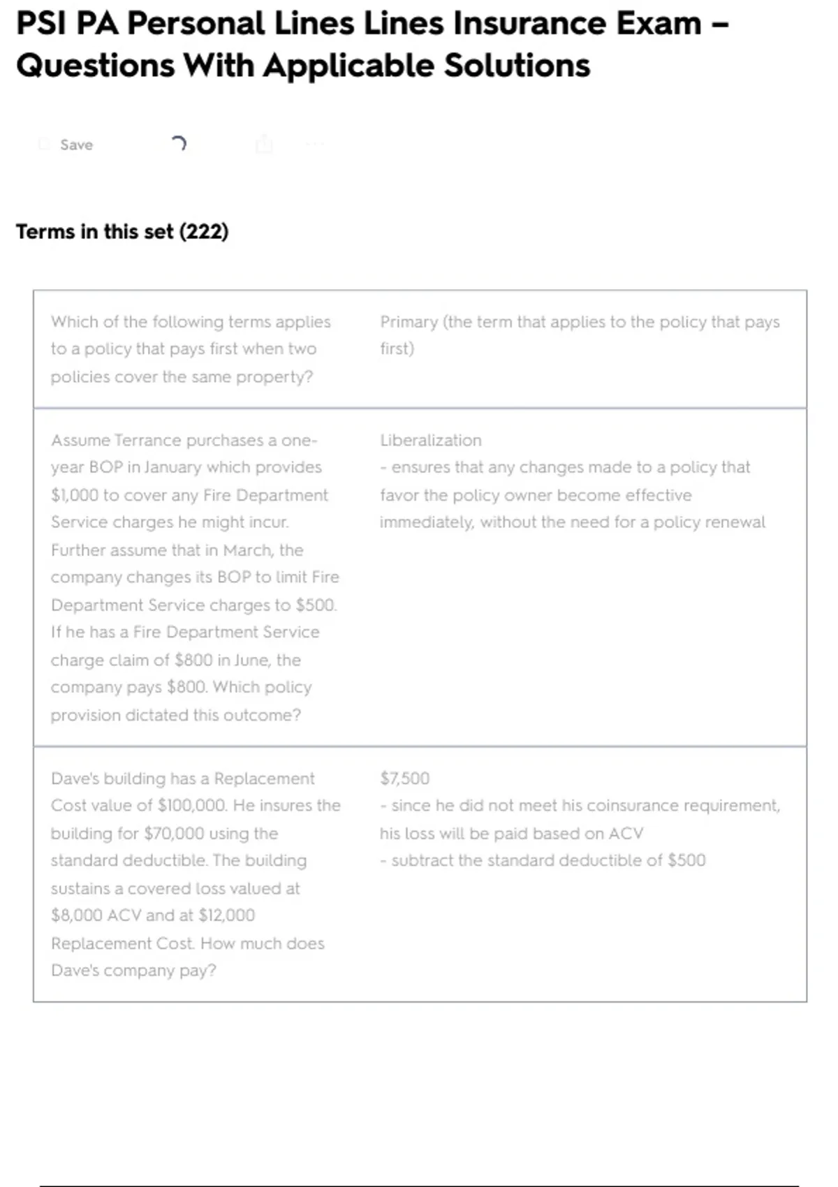 PSI PA Personal Lines Lines Insurance Exam – Questions With Applicable Solutions