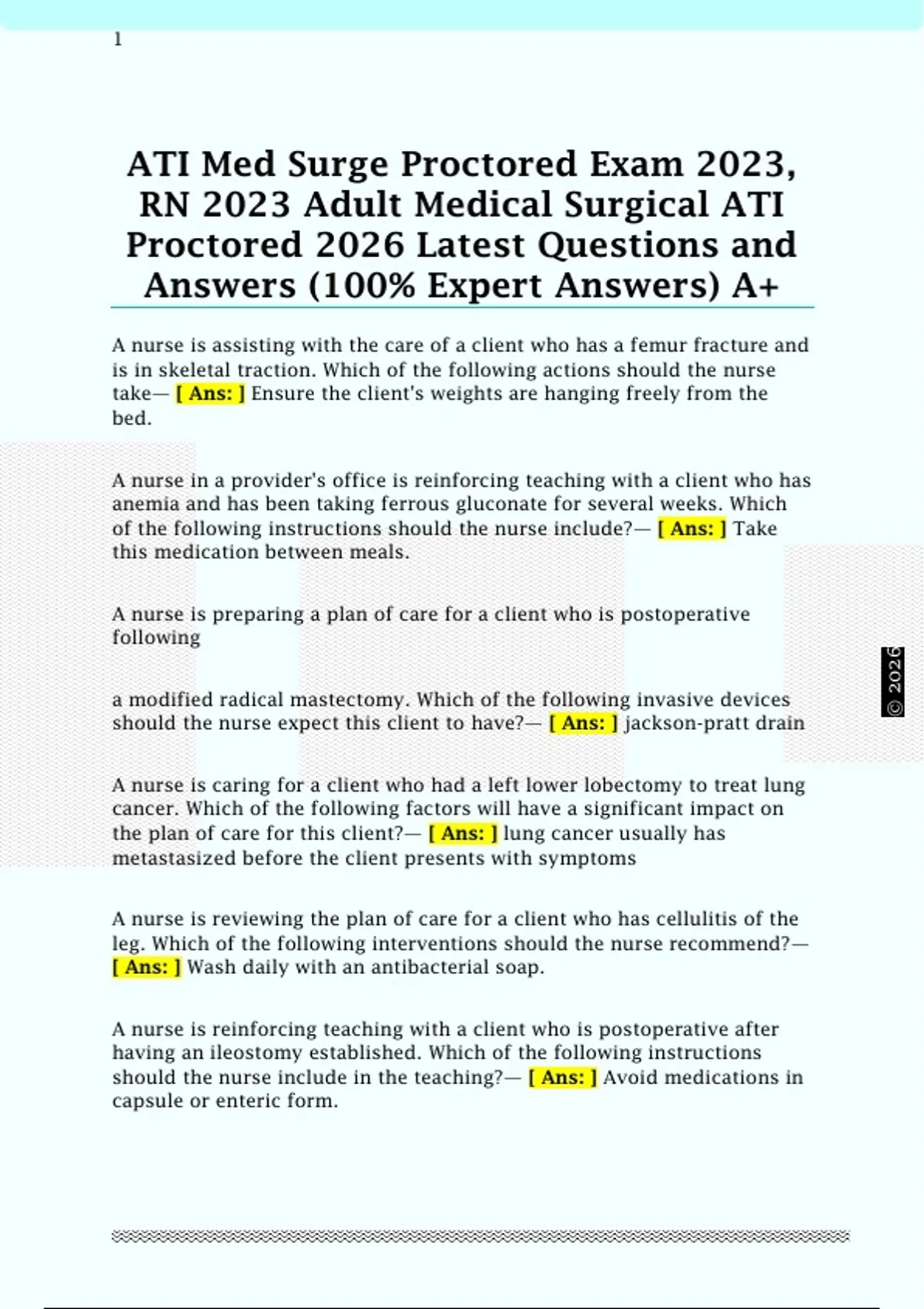 ATI Med Surge Proctored Exam 2023, RN 2023 Adult Medical Surgical ATI Proctored 2026 Latest Questions and Answers (100% Expert Answers) A+