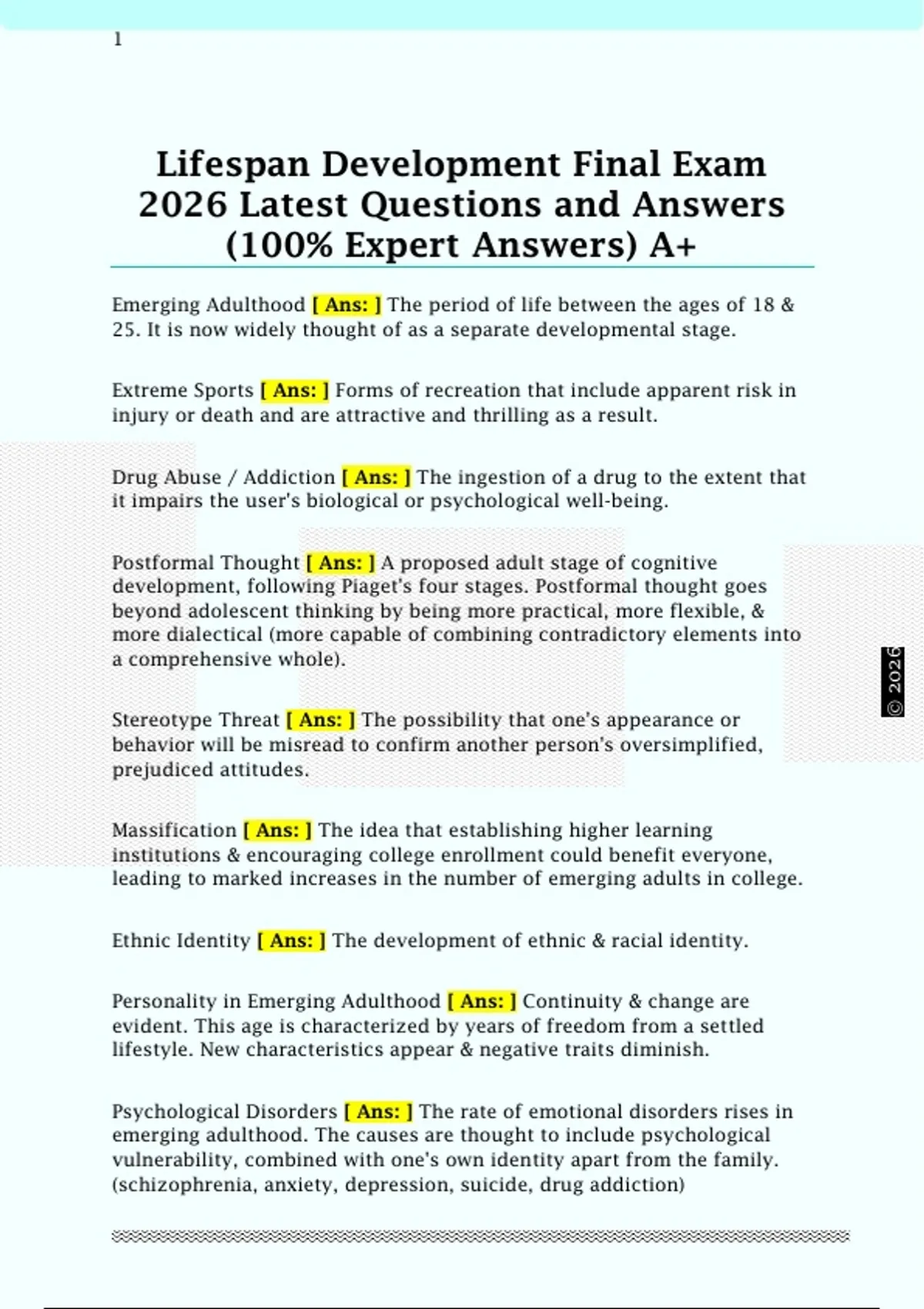 Emerging Adulthood [ Ans: ] The period of life between the ages of 18 &