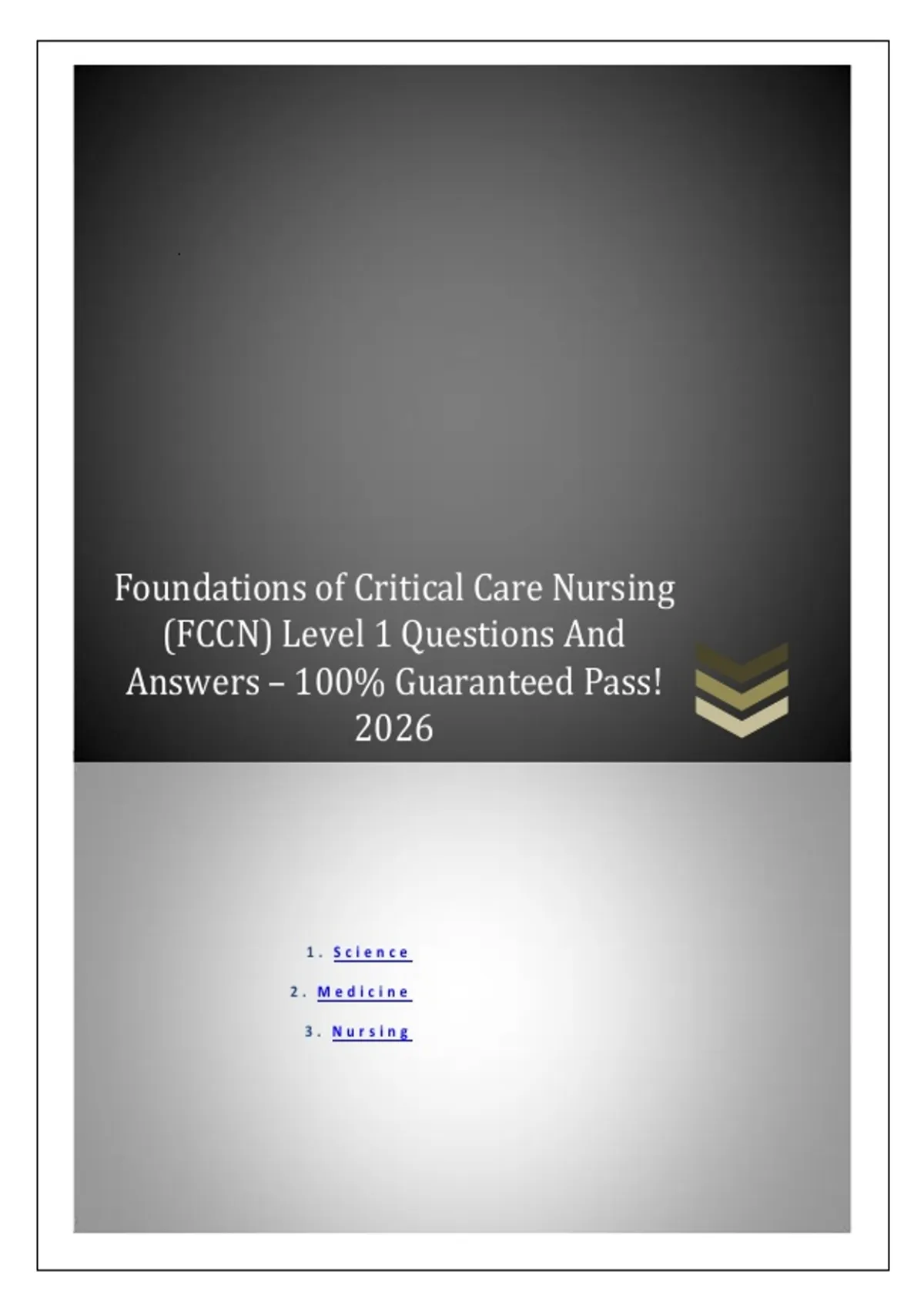Foundations of Critical Care Nursing (FCCN) Level 1 Questions And Answers – 100% Guaranteed Pass! 2026