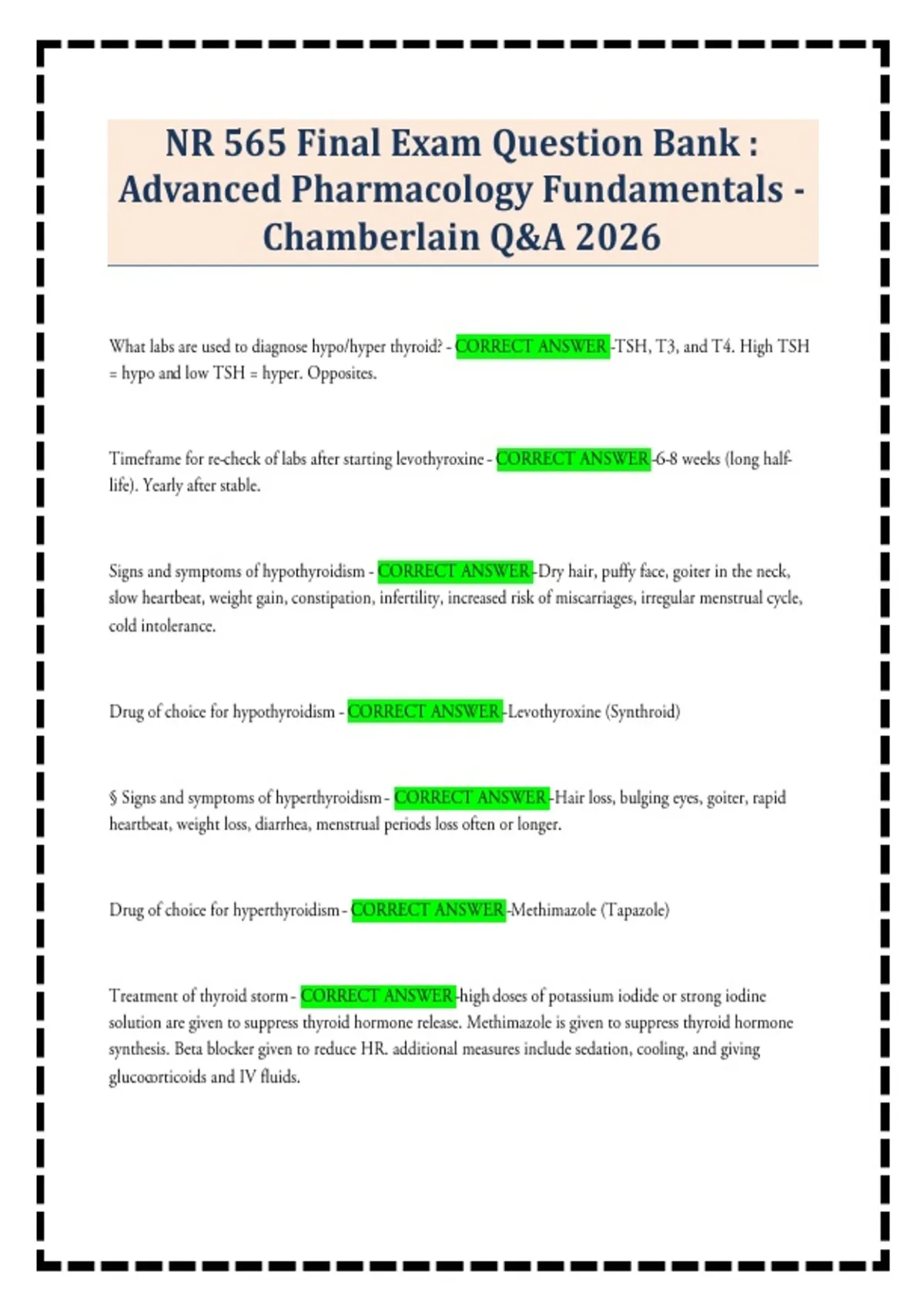 NR 565 Final Exam Question Bank : Advanced Pharmacology Fundamentals - Chamberlain Q&A 2026