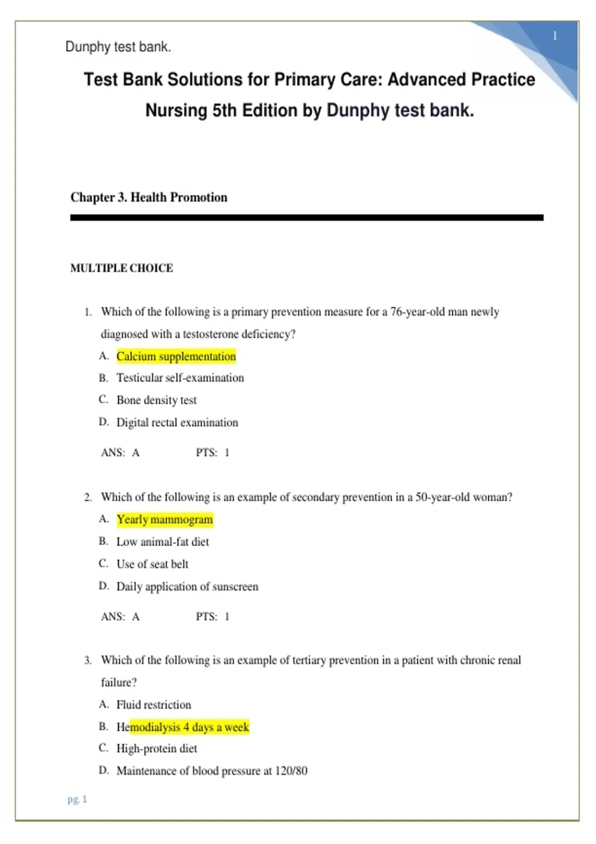 Test Bank Solutions for Primary Care: Advanced Practice