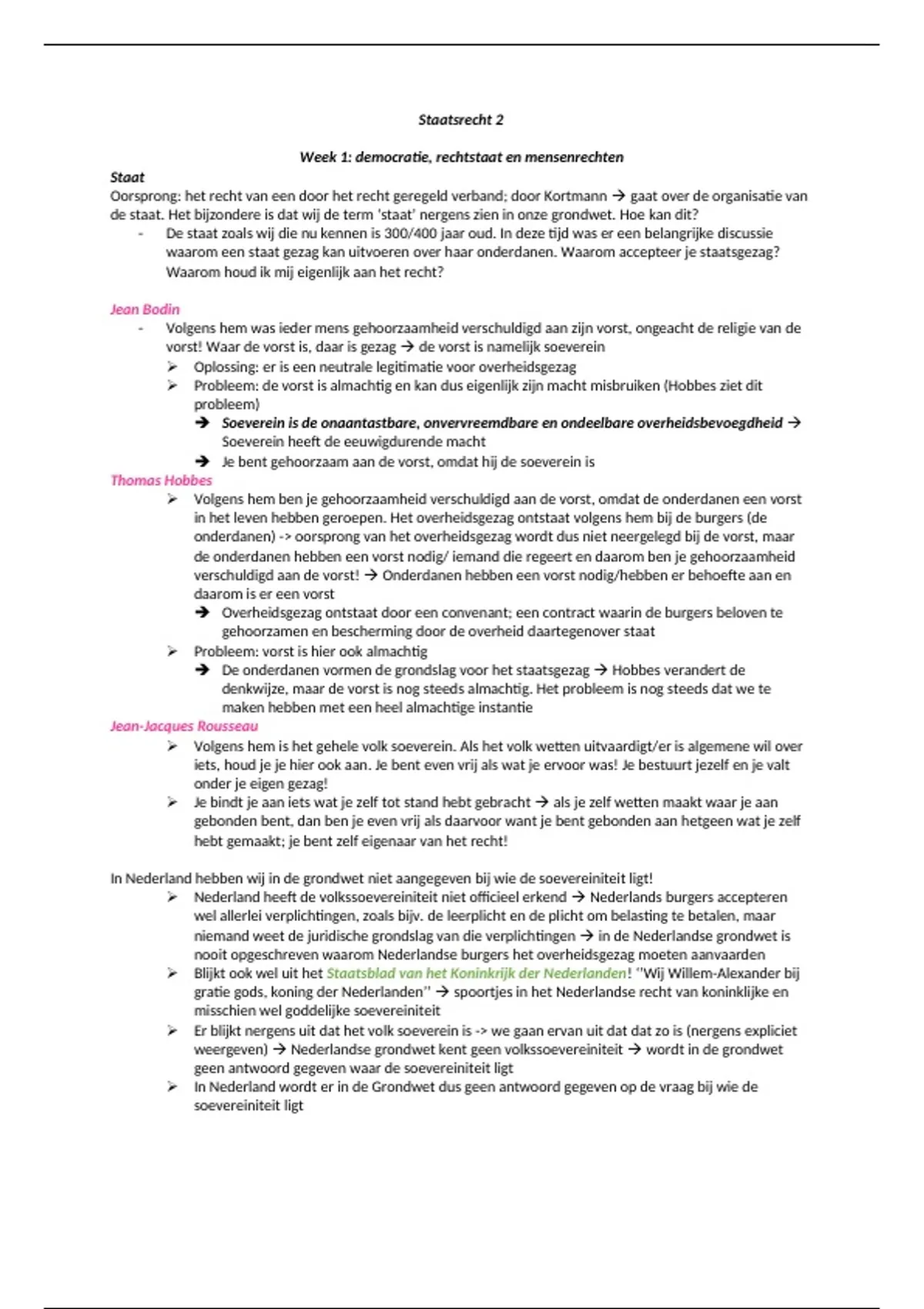 1. Locke: de staat is niet almachtig. Er bestaan natuurlijke grenzen -> Hoofddoel: de staat moet