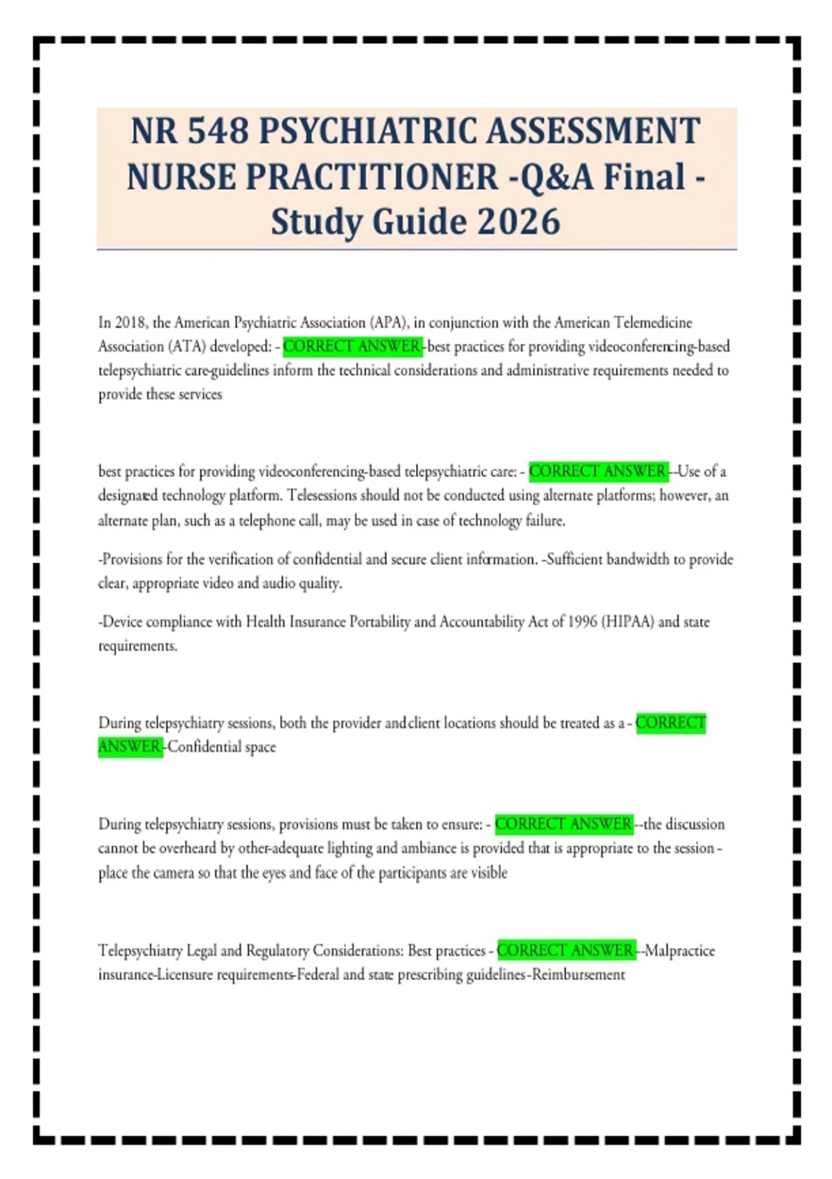 - NR 548 Psychiatric Assessment