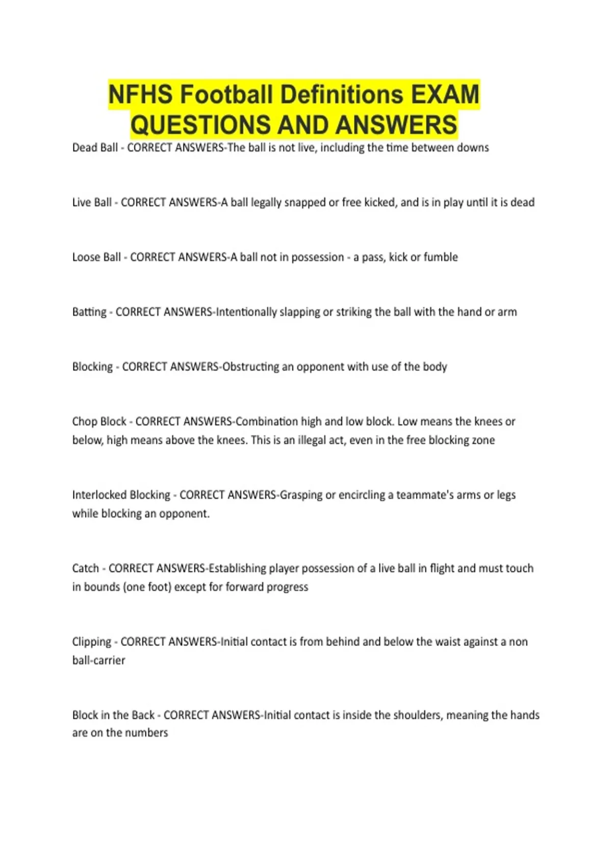 NFHS Football Definitions EXAM QUESTIONS AND ANSWERS.