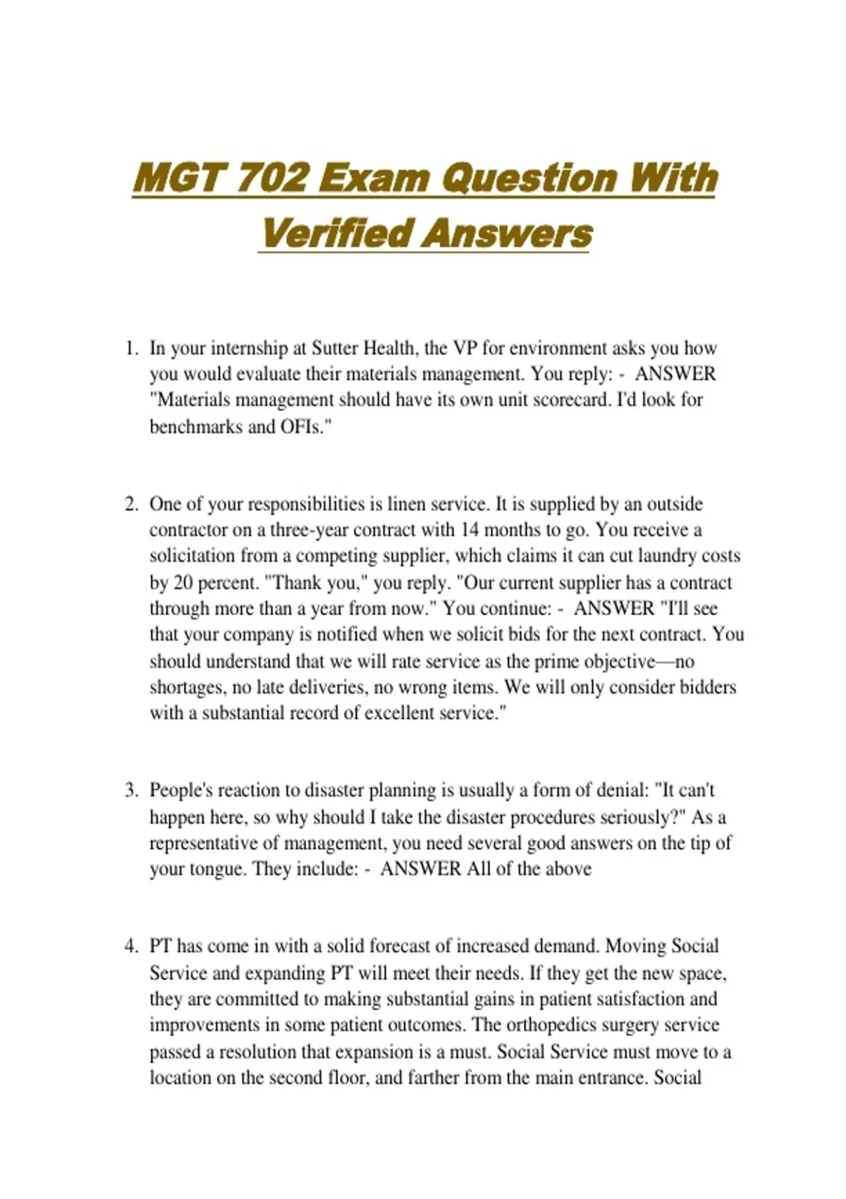1. In your internship at Sutter Health, the VP for environment asks you how
