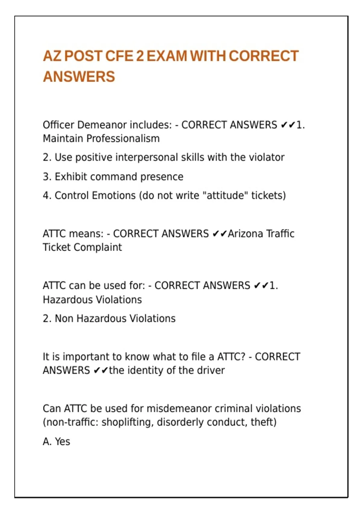 AZ POST CFE 2 EXAM WITH CORRECT ANSWERS